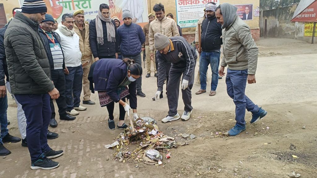 गाजीपुर। प्रधानमंत्री एवं मुख्य मंत्री के आवाह्न पर देश प्रदेश में स्वच्छता अभियान कार्यक्रम संचालित किया गया है। 22 जनवरी 2024 को अयोध्या में भगवान श्रीराम के मन्दिर में प्राण प्रतिष्ठा को लेकर 14 जनवरी 2024 को जनपद में स्वच्छता अभियान के अन्तर्गत शहर क्षेत्र के विभिन्न स्थानों पर विशेष सफाई अभियान कार्यक्रम चलाया गया। जिसमे जिले भर के अधिकारियों एवं कर्मचारियों ने बढचढ कर हिस्सा लिया एवं साफ-सफाई की। जिलाधिकारी आर्यका अखौरी ने शास्त्री नगर चौराहा, सिकन्दरपुर, कलेक्ट्रेट परिसर में स्वच्छता अभियान में स्वयं झाड़ू एवं फावडे के साथ उपस्थित होकर साफ-सफाई करते हुए लोगो को स्वच्छता के प्रति जागरूक एवं अपील किया। स्वच्छता अभियान में गोराबाजार हनुमान मन्दिर पर अपर जिलाधिकारी वि0रा0 अरूण कुमार सिंह, लंका बस स्टैण्ड से लंका गेट नं0-04 तक डिप्टी कलेक्टर चन्द्रशेखर यादव ने उपस्थित होकर साफ- सफाई की। इसके अतिरिक्त समस्त शासकीय कार्यालयो, तहसीलो, विकास खण्डो, मे सम्बन्धित अधिकारियों की उपस्थिति में स्वच्छता अभियान चलाते हुए साफ-सफाई की गयी।