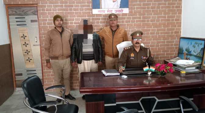 गाजीपुर। थाना कोतवाली पुलिस द्वारा ग्राम विद्यापार थाना कोतवाली क्षेत्र से वादी की बहन को बहला फुसलाकर भगा ले जाने की घटना कारित करने वाले अभियुक्त को गिरफ्तार किया गया। मालूम हो कि 26 दिसंबर 2023 को विद्यापारा थाना कोतवाली क्षेत्र से काल्पनिक नाम राधा पुत्री श्याम निवासी विद्यापार थाना कोतवाली के गुम हो जाने के सम्बन्ध मे थाना कोतवाली पर मु0अ0सं0 618/2023 धारा 363 भादवि पंजीकृत किया गया। जिसके बाद दौरान विवेचना अपह्रता / पिडिता की बरामदगी कोतवाली पुलिस द्वारा की गयी। पिडिता के मेडिकल व बयान से उक्त मुकदमे मे अभियुक्त भानु प्रताप सिंह पुत्र सतीष कुमार निवासी तेजपुर पुलिस चौकी नन्दना थाना घाटमपुर जनपद कानपुर नगर का नाम प्रकाश मे आया। जिसके बाद उक्त मुकदमे मे धारा 376(3) भादवि व 5L/6 पाक्सो एक्ट की बढोत्तरी किया गया तथा वाँछित अभियुक्त भानु प्रताप सिंह पुत्र सतीस कुमार निवासी तेजपुर पुलिस चौकी नन्दना थाना घाटमपुर जनपद कानपुर नगर 30 वर्ष को आज सोमवार को कोतवाली प्रभारी दीनदयाल पांडे द्वारा माल गोदाम रोड थाना कोतवाली से गिरफ्तार कर लिया गया। गिरफ्तार करने वाली पुलिस टीम में उप निरीक्षक अभिराज सरोज, हेड कांस्टेबल हरिगोविन्द दूबे और कांस्टेबल संदीप कुमार शामिल रहे।