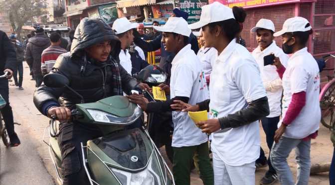 स्वयंसेवकों ने किया वाहन चालकों को जागरूक, बताए वाहन चलाने के नियम