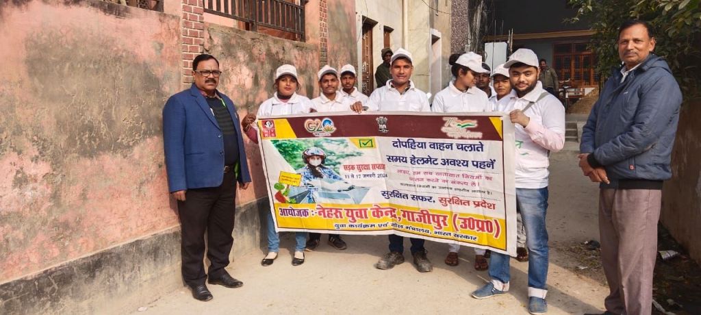 गाजीपुर। नेहरु युवा केंद्र गाजीपुर, युवा कार्यक्रम एवम खेल मंत्रालय भारत सरकार के तत्वावधान में सड़क सुरक्षा सप्ताह के अंतर्गत लंका चौराहा पर नेहरू युवा केंद्र के स्वयंसेवकों द्वारा सोमवार को जागरुकता अभियान चलाया गया। इस अवसर पर बिना हेलमेट के दो पहिया वाहन चलाने वालों को हेलमेट पहनकर ही वाहन चलाने की सलाह दी गई तथा इसके दुष्परिणामों के बारे में भी अवगत कराया गया। चार पहिया वाहन में अधिकांश व्यक्ति सीट बेल्ट का प्रयोग न करते हुए पाए गए जिन्हें जागरुक किया गया। जागरुकता अभियान 17 जनवरी तक चलाया जाएगा। जागरुकता अभियान में सुरेंद्र सिंह टी एस आई, एच पी सी टी अश्विनी पांडे, देव प्रकाश, प्रमोद कुमार, कमलेश गौतम ने सहयोग किया। नेहरु युवा केंद्र के उप निदेशक कपिल देव ने बताया कि आए दिन हो रही सड़क दुर्घटनाओं के इस तरह के अभियान चलाने से कमी आएगी। उन्होंने सभी से अपील किया कि सड़क पर चलते वक्त नियमों का अवश्य पालन करें। जागरुकता टीम का नेतृत्व नेहरु युवा केन्द्र के लेखा एवम कार्यक्रम सहायक सुभाष चंद्र प्रसाद ने किया। स्वयं सेवक खुशबू वर्मा ,शाश्वत सिंह ,सुमन बिंद, सत्यकेश, रुद्र नारायण ,रवि कुमार, पिंकी कुमारी, दीपक तिवारी आदि की भूमिका सराहनीय रही।