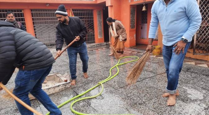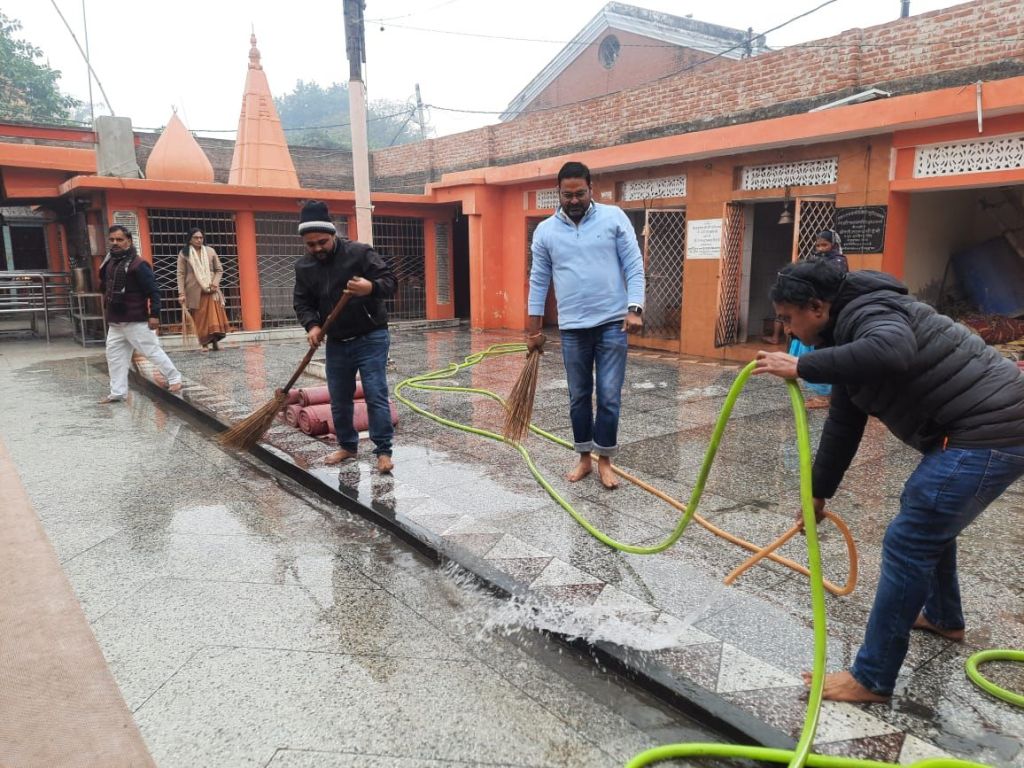 हाथ में झाड़ू-पोछा लेकर पंकज सिंह चंचल ने की संकट मोचन मंदिर की साफ-सफाई