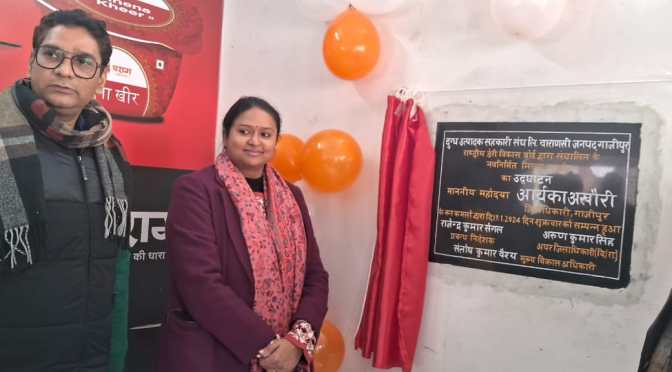 गाजीपुर। जिलाधिकारी आर्यका अखौरी ने कलेक्ट्रेट परिसर में शुक्रवार को दुग्ध उत्पादक सहाकरी संघ लि0 वाराणसी द्वारा बनाये गये पराग संस्था गाजीपुर का फीता काटकर उद्घाटन किया। जो राष्ट्रीय विकास बोर्ड द्वारा संचालित है। जिलाधिकारी ने अधिकारी, कर्मचारी एवं अन्य व्यक्तियों की उपस्थिति में कहा कि पराग की इस संस्था के बनने से लोगो को शुद्ध दुध, मख्खन, घी, पनीर, छॉछ एवं दुध से बने अन्य वस्तुये प्राप्त होगे। जिलाधिकारी द्वारा पराग के दुध से बने चाय पीकर चेक किया जिसकी सराहना करते हुए अच्छी चाय बतायी।