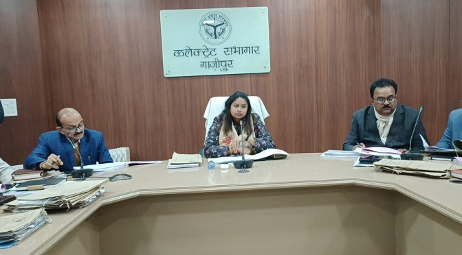 गाजीपुर। जिलाधिकारी आर्यका अखौरी की अध्यक्षता में कर-करेत्तर एंव मासिक स्टाफ की बैठक कलेक्ट्रेट सभागार में मंगलवार को सम्पन्न हुआ। बैठक में जिलाधिकारी ने परिवहन,वन विभाग,स्टाम्प,नगर पालिका, आडिट आपत्ति,चकबन्दी, व्यापार कर, विद्युत देय, आबकारी, अंश निर्धारण, मोटर देय, आईजीआरएस, के संबंध मे विस्तारपूर्वक समीक्षा की। जिलाधिकारी तालाब,खेल मैदान, चारागाह, एवं ग्राम सभा की भूमि को प्राथमिकता के तौर पर चिंहित करते हुए उस पर भू-माफियाओं केे द्वारा किए गए अतिक्रमण को मुक्त कराते हुए एफआईआर दर्ज कराने का निर्देश दिया। उन्होने आई जी आर एस की समीक्षा के दौरान सख्त निर्देश देते हुए कहा कि किसी भी शिकायत का निस्तारण निश्चित समयान्तराल मे किया जाए अन्यथा निस्तारण न होने के कारण डिफाल्टर होने पर संबंधित अधिकारी जिम्मेदार होंगे।
