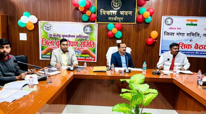 गाजीपुर। मुख्य विकास अधिकारी संतोष कुमार वैश्य की अध्यक्षता में बुधवार को जिला वृक्षारोपण समिति, जिला गंगा समिति व जिला पर्यावरण समिति की बैठक विकास भवन के पंडित दीनदयाल सभागार में संपन्न हुआ। बैठक में मुख्य विकास अधिकारी ने मियांवाकी पद्धति द्वारा वृक्षारोपण कराए जाने पर बल दिया। उन्होंने कहा कि जनपद में वर्ष 2024 में वृक्षारोपण हेतु शासन द्वारा कुल 4018100 वृक्षारोपण का लक्ष्य निर्धारित किया गया है जिसे जनपद के विभिन्न विभागों द्वारा लक्ष्य को पूर्ण समयाअवधि में करा लिया जाय। संबंधित विभागों को उनके लक्ष्य के बारे में बताया गया साथ ही यह भी निर्देशित किया कि आवंटित लक्ष्य के सापेक्ष स्थल का चयन कर शीघ्र उपलब्ध करा दे। प्रभागीय निदेशक विवेक यादव ने बताया कि जनपद के विभिन्न विकासखंड में वन विभाग द्वारा स्थापित पौधशालाओं में लगभग कुल 60 लाख पौधा जिसमें फलदार, औषधि, इमरती आदि पौधे तैयार किया जा रहा हैं। इस बैठक में संबंधित विभागों के नोडल अधिकारी व कर्मचारी उपस्थित रहे। गंगा समिति की समीक्षा के उपरान्त बताया गया कि शहरो का गंदा पानी व कचड़ा सीधे गंगा में जाता है जिसपर मुख्य विकास अधिकारी ने नगर पालिका परिषद सदर को निर्देशित किया कि गंगा नदी में जो नाले का पानी जा रहा है उन सभी सभी नालो पर जाली लगाए।