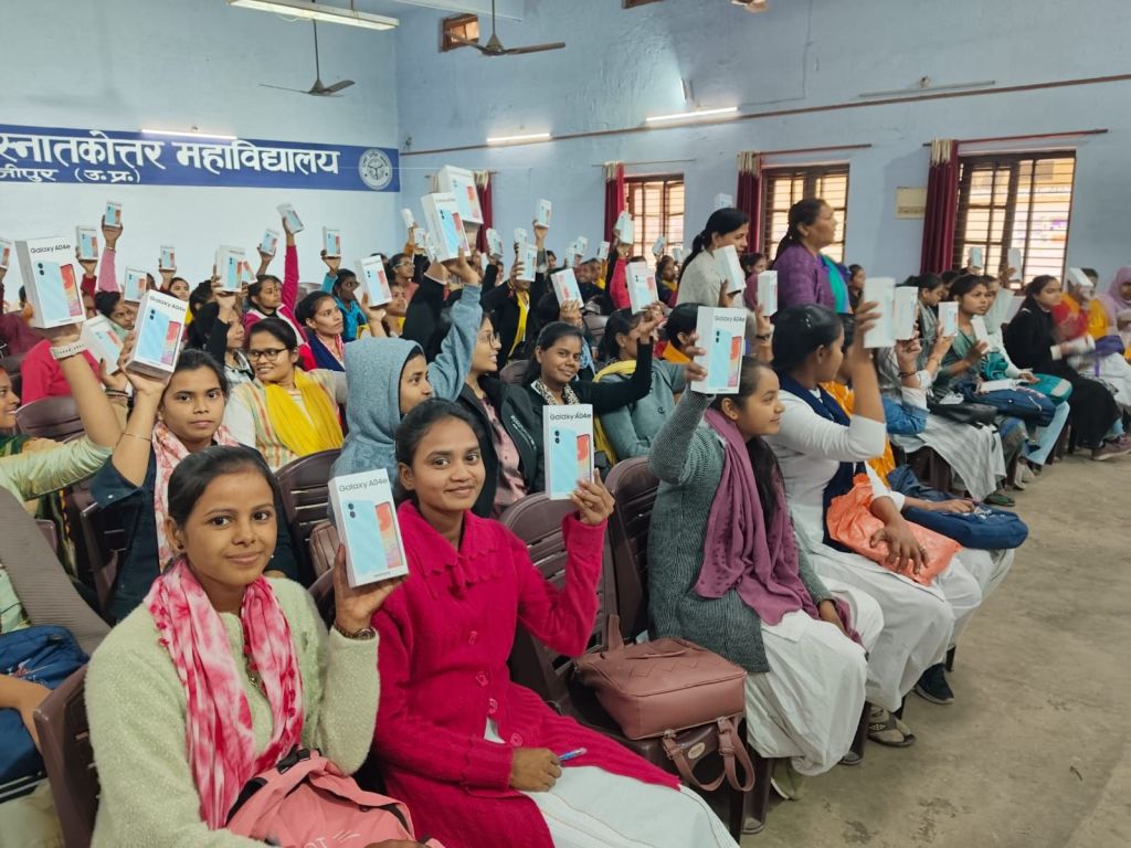 स्मार्ट फोन पाकर छात्राओं के चेहरे खिल उठे