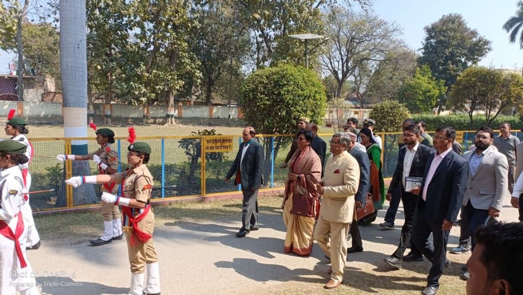 एनसीसी (थल एवं नौ सेना) के छात्र-छात्राओं ने श्री कुशलपाल श्रोतृशाला के समक्ष मुख्य अतिथि को गार्ड ऑफ ऑनर दिया। पी० जी० कॉलेज के प्रबंधक अजीत कुमार सिंह ने मुख्य अतिथि को पुष्प गुच्छ, अंगवस्त्र और स्मृतिचिन्ह देकर स्वागत किया। मुख्य अतिथि ने मां सरस्वती की प्रतिमा पर पुष्पांजलि अर्पित कर दीप प्रज्वलित किया।