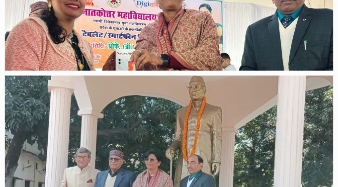 इस दौरान मुख्य अतिथि प्रोफेसर वन्दना सिंह ने बताया की नई शिक्षा नीति को कुशलतापूर्वक लागू करने में सूचना प्रौद्योगिकी की महत्वपूर्ण भूमिका है। बच्चों को मिलने वाले स्मार्टफोन और टैबलेट नई शिक्षा नीति को बेहतर तरीके से लागू करने में उत्प्रेरक का कार्य करेंगी। उन्होंने बताया कि पी० जी० कॉलेज जनपद का सबसे बड़ा महाविद्यालय है। कुलपति ने कालेज के शोध पुस्तकालय का निरीक्षण भी किया। उन्होंने कहा कि यहां की शोध ग्रंथालय में तमाम दुर्लभ पांडुलिपिया संरक्षित है। महाविद्यालय को हिंडोला पांडुलिपियों को डिजिटल रूप में संरक्षित करने की दिशा में काम करना चाहिए । शिक्षणेत्तर कर्मचारी संघ की ओर संघ के अध्यक्ष विवेक सिंह शम्मी और उपाध्यक्ष विजय सिंह ने बुके देकर मुख्य अतिथि का स्वागत किया। संचालन मुख्य नियंता प्रोफे० (डॉ०) एस० डी० सिंह परिहार ने किया। इस अवसर पर स्मार्टफोन वितरण के नोडल अधिकारी प्रोफे० (डॉ०) एन सिंह ने धन्यवाद ज्ञापित किया।