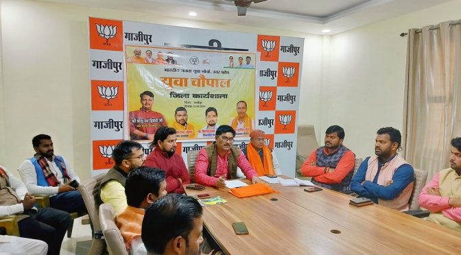 गाजीपुर। भाजपा युवा मोर्चा द्वारा आयोजित होने वाले कार्यक्रम “युवा चौपाल” की कार्यशाला शनिवार को भाजपा जिला कार्यालय छावनी लाइन के कांफ्रेंस हॉल में जिलाध्यक्ष विश्वप्रकाश अकेला की अध्यक्षता में हुई। कार्यशाला को संबोधित करते हुए जिला महामंत्री प्रवीण सिंह ने कहा की युवा मोर्चा के नेतृत्व में युवा चौपाल का आयोजन किया जाएगा जिसमें सरकार द्वारा युवाओं के भविष्य निर्माण, आर्थिक उत्थान के लिए सरकार ने योजनाओं के माध्यम से समर्पित प्रयास किया। यह कार्यक्रम लोकसभा चुनाव 2024 के प्रति एक बहुत बडी जिम्मेदारी युवाओं के कंधों पर संगठन ने सौंपी है। भाजयुमो प्रदेश उपाध्यक्ष राजेश राजभर ने कहा कि भाजपा जैसे कार्यकर्ता किसी भी राजनैतिक दल में नहीं मिलेंगे, जो सदैव समर्पित होकर निस्वार्थ भाव से संगठन और समाज की सेवा करते हैं। और इसी सेवा भाव के साथ आप सभी को युवा चौपाल कार्यक्रम शीर्ष नेतृत्व ने दिया है ।मुझे पूर्ण विश्वास है कि आप सभी पूरी निष्ठा से कार्य करते हुए पार्टी शिर्ष नेतृत्व द्वारा दिये गए इस जिम्मेदारी का सफल निर्वहन करेंगे।