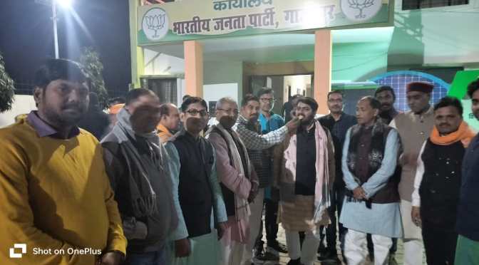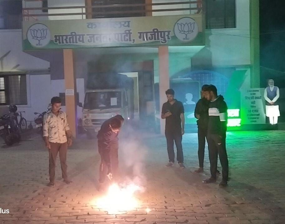 भाजपा कार्यकर्ताओं ने उल्लास से एक दूसरे को मिठाई खिलाकर जीत कि बधाई देते हुए भारत माता की जय के नारे लगाए। पटाखे की आवाज बहुत देर तक आसमान में रंग बिखेरती रही।