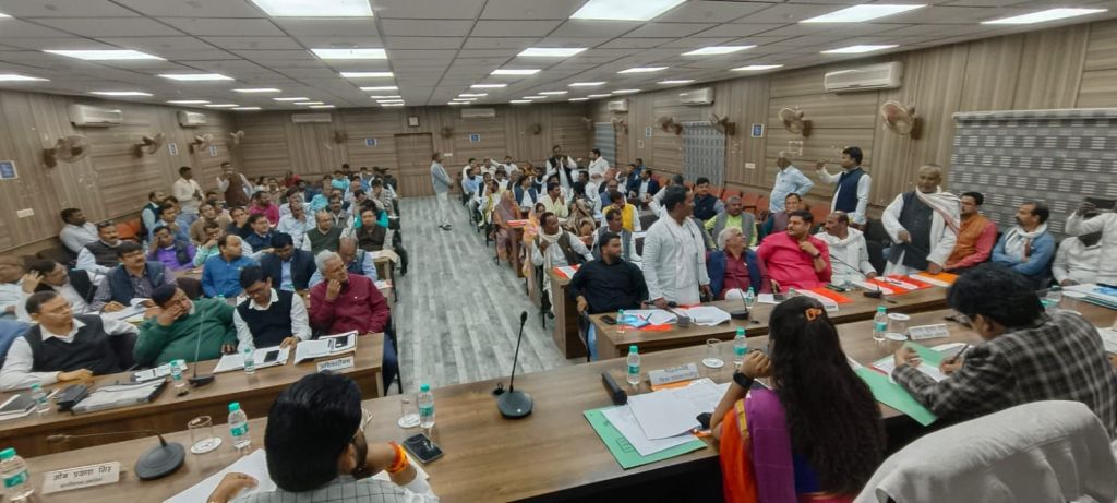 गाजीपुर। जिला पंचायत की सामान्य बैठक जिला पंचायत अध्यक्ष सपना सिंह की अध्यक्षता में मंगलवार को जिला पंचायत सभागार में जनपद के समस्त सदस्यों के साथ सम्पन्न हुआ। बैठक में 19 दिसंबर 2023 के कार्यवाही की पुष्टि सदन में उपस्थित सदस्यों द्वारा सर्व सम्मति से की गयी। इस दौरान जनपद के विकास कार्यों की चर्चा के दौरान अनुपस्थित अधिकारियों का संज्ञान लेते हुए अध्यक्ष द्वारा आगामी बैठक में अनिवार्य रूप से उपस्थिति हेतु निर्देशित किया गया तथा सदस्यों से अभद्र व्यवहार करने के कारण अधिशासी अभियन्ता, विद्युत वितरण खण्ड, जमानियाँ के विरूद्ध सदन द्वारा निन्दा का प्रस्ताव पारित किया गया।