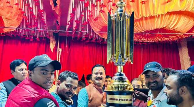गाज़ीपुर। लकड़ी के टाल नवाबगंज में दिलदारनगर पंचायत अध्यक्ष अविनाश जायसवाल नेपाली ने क्रिकेट मैच के मौक़े पर कहा कि खेल से शारीरिक ही नहीं मानसिक विकास भी होता साथ ही साथ आपसी सद्भाव भी बढ़ता है। खेल को खेल की तरह खेलना चाहिए। खेल में हार जीत लगी रहती है, जो हारता है वो सीखता है। फ़ाइनल मैच सी सिटी वाराणसी एवं हिन्द ट्रेडिंग ग़ाज़ीपुर के बीच खेला गया, जिसमे रोमांचक मुक़ाबले में ग़ाज़ीपुर की टीम ने वाराणसी को 2 रनों से हरा कर ख़िताब पर क़ब्ज़ा कर लिया। इस मैच में पहले बल्लेबाज़ी करते हुए हिन्द ट्रेडिंग ग़ाज़ीपुर कि टीम में निर्धारित ओवर में 50 रन बनाए, जवाब में लक्ष्य का पीछा करते हुए काँटे के मुक़ाबले में सी सिटी वाराणसी 2 रनों पराजित हो गई।