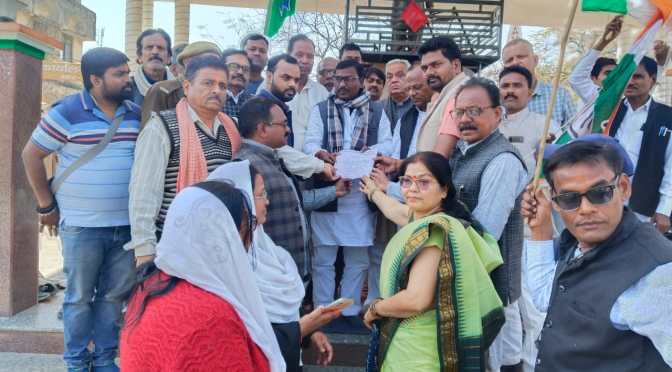 गाज़ीपुर। जिला और शहर कांग्रेस कमेटी के संयुक्त तत्वाधान में कांग्रेस पदाधिकारियों और कार्यकर्ताओं द्वारा बुधवार को उत्तर प्रदेश के ओला वृष्टि पीड़ित किसानों के पक्ष में जिलाध्यक्ष सुनील राम के नेतृत्व में धरना प्रदर्शन कर महामहिम राज्यपाल यूपी को संबोधित एक पत्रक मजिस्ट्रेट के माध्यम से जिलाधिकारी को सौंपा गया। इस दौरान कांग्रेस जिलाध्यक्ष सुनील राम ने कहा कि कांग्रेस द्वारा ये मांग की गई है कि उत्तर प्रदेश के मुख्यमंत्री योगी द्वारा ओलावृष्टि की मार झेल रहे किसानों को 24 घंटे में मुआवजा देने की घोषणा के बावजूद अभी तक कोई सरकारी मदद पीड़ित किसानों को नहीं मिली है, जिसके लिए आज कांग्रेस पार्टी जिला मुख्यालय पर किसानों के हित में धरना प्रदर्शन कर रही है। हमारी मांग है कि अविलंब पीड़ित किसानों को मुआवजा दिया जाए। वहीं शहर अध्यक्ष संदीप विश्वकर्मा ने बताया कि सरकार द्वारा की जाने वाली घोषणाएं महज जुमला बन कर रह जा रही हैं, जल्द ही पीड़ित किसानों को मुआवजा मिले अन्यथा कांग्रेस पार्टी इसके लिए बड़ा आंदोलन करने पर विवश होगी। एआईसीसी सदस्य रविकांत राय ने बताया कि ओलावृष्टि से पीड़ित किसान सीएम योगी की घोषणाओं का इंतजार कर रहे हैं लेकिन अभी तक मदद मिल नहीं सकी। इस अवसर पर प्रमुख रूप से वरिष्ठ नेत्री कुसुम तिवारी, पीसीसी सदस्य जनक कुशवाहा, अजय कुमार श्रीवास्तव, महबूब निशा, सुमन चौबे, राम नगीना पांडे, हामिद अली, राजेश गुप्ता, दिव्यांशु पांडे, धर्मेंद्र, मोहम्मद राशिद, मिलिंद सिंह, माधव कृष्ण, रईस अहमद, अखिलेश यादव ,राहुल कुशवाहा ,विनोद सिंह, जमुना शर्मा, आशुतोष सिन्हा, देवेंद्र कुमार सिंह, विजय, लखन श्रीवास्तव, शमीम, सतीश चंद्र श्रीवास्तव, ओम प्रकाश, शंभू सिंह कुशवाहा, सुधांशु तिवारी, अनुराग पांडे, जितेंद्र कुमार सिंह आदि लोग उपस्थित रहे ।