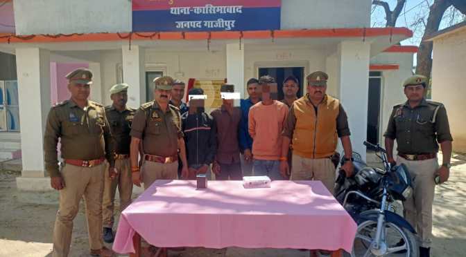 गाजीपुर। कासिमाबाद थाना पुलिस ने शनिवार को तीन अभियुक्त को गिरफ्तार किया जिसमें से दो बाल अपचारी है। इनके पास से एक तमंचा, एक जिन्दा कारतूस .315 बोर व एक मोटरसाइकिल बरामद हुआ। पुलिस अधीक्षक ओमवीर सिंह के निर्देश पर अपराध एवं अपराधियों के विरुद्ध चलाये जा रहे अभियान के तहत शुक्रवार को प्रभारी निरीक्षक रामसजन नागर ने अपने पुलिस टीम के साथ सन्त रविदास गेट सनेहुआ के पास से वाहन चेकिंग के दौरान एक बाइक पर तीन सवार व्यक्ति को पकड़ा। तलाशी ली गयी तो इन सभी के पास से एक तमंचा, एक कारतूस और एक बाइक बरामद हुआ। गिरफ्तार अभियुक्तों में पहला अभिनव गुप्ता उर्फ साहिल गुप्ता नि0ग्राम चक आजम थाना नोनहरा उम्र 19 वर्ष, दूसरा बाल अपचारी निवासी ग्राम चावनपुर गनी थाना कासिमाबाद और तीसरा बाल अपचारी निवासी ग्राम कटया परजीपाह थाना कासिमाबाद शामिल हैं। पूछताछ करने पर अभियुक्तों ने बताया कि उक्त स्पेलेण्डर UP54N4526 फिरदौस पुत्र फक्करे आलम निवासी बहादुरगंज थाना कासिमाबाद की है, जिसे हम लोगों ने गांधी मेमोरियल मैदान के सामने से चोरी की थी। फिरदौस पुत्र फक्करे आलम के द्वारा चोरी की गई मोटरसाइकिल के सम्बन्ध मे 7 मार्च 2024 को मुकदमा पंजीकृत कराया गया था। गिरफ्तार किए गए अभिनव गुप्ता उपरोक्त को हिरासत पुलिस में लिया गया तथा शेष 2 बाल अपचारी को निगरानी मे लिया गया। गिरफ्तार करने वाली पुलिस टीम में प्रभारी निरीक्षक के साथ उप निरीक्षक आशुतोष शुक्ला, कांस्टेबल राजेश कुमार, का. सुजीत प्रसाद, का. सनोज यादव और का. विमलेश कुमार शामिल रहे।