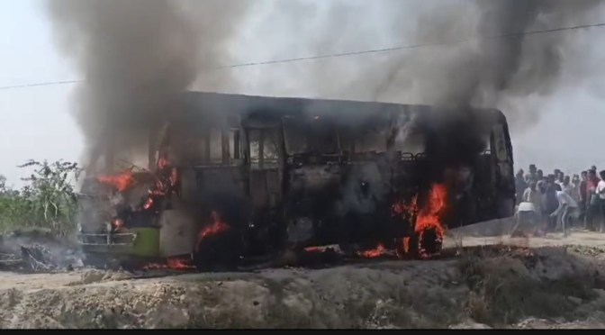 बता दें कि गाजीपुर के मरदह थाना के 400 मीटर के पास एचटी तार के संपर्क में आने से बस में आ आग लग गई। जिसमें कुल 5 लोगों की मौत हो गयी हैं, वहीं 10 से अधिक लोग घायल बताये जा रहे हैं। घायलों को अस्पताल में भर्ती कराया गया है। हादसे का शिकार हुई बस बरातियों से भरी बताई जा रही है। बस मऊ से एक वैवाहिक कार्यक्रम में जा रही थी जिसमें कुल 38 बराती बस में सवार थे।