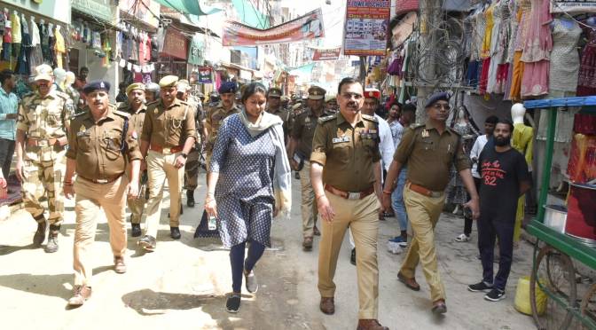 गाजीपुर। नागरिकता संशोधन अधिनियम (CAA) लागू होने, रमजान माह व आगामी लोकसभा चुनाव को देखते हुए मंगलवार को डीएम आर्यका अखौरी एसपी ओमवीर सिंह ने कोतवाली नगर क्षेत्र में पैदल गस्त/रूट मार्च/एरिया डोमिनेशन किया। गस्त के दौरान डीएम-एसपी ने शहर के आम जनमानस से संवाद किया। लोगों को नागरिकता संशोधन अधिनियम (CAA) के सकारात्मक पक्ष से अवगत कराया। इस दौरान इन्होंने किसी भी तरह के अफवाहों का प्रचार प्रसार न करने व सामाजिक सौहार्द बनाये रखने की अपील की। यह रूट मार्च पुलिस चौकी विशेश्वरगंज से शुरू होकर खोवामंडी, रजदेपुर, टाउनहॉल, चीतनाथ, नखास, खुदाईपूरा, एमएएच इंटर कॉलेज के रास्ते कोतवाली पहुँचकर समाप्त हुआ। इस रुट मार्च में एसपी सिटी ज्ञानेंद्र, एसडीएम सदर प्रखर उत्तम, सीओ सिटी प्रभाकर पाण्डेय, कोतवाली प्रभारी दीनदयाल पाण्डेय, पुलिस बल और केंद्रीय बल सीआईएसएफ के अधिकारी एवं जवान मौजूद रहे।