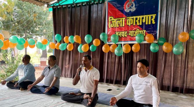 स्वास्थ्य, संस्कार, शिक्षा व नियमित योगाभ्यास स्वयं करते हुए उपस्थित बन्दियों को योग करने के लिए प्रेरित किया। इस अवसर पर उपकारापाल रविन्द्र सिंह यादव भी स्वयं योग