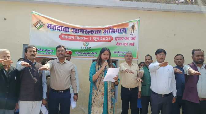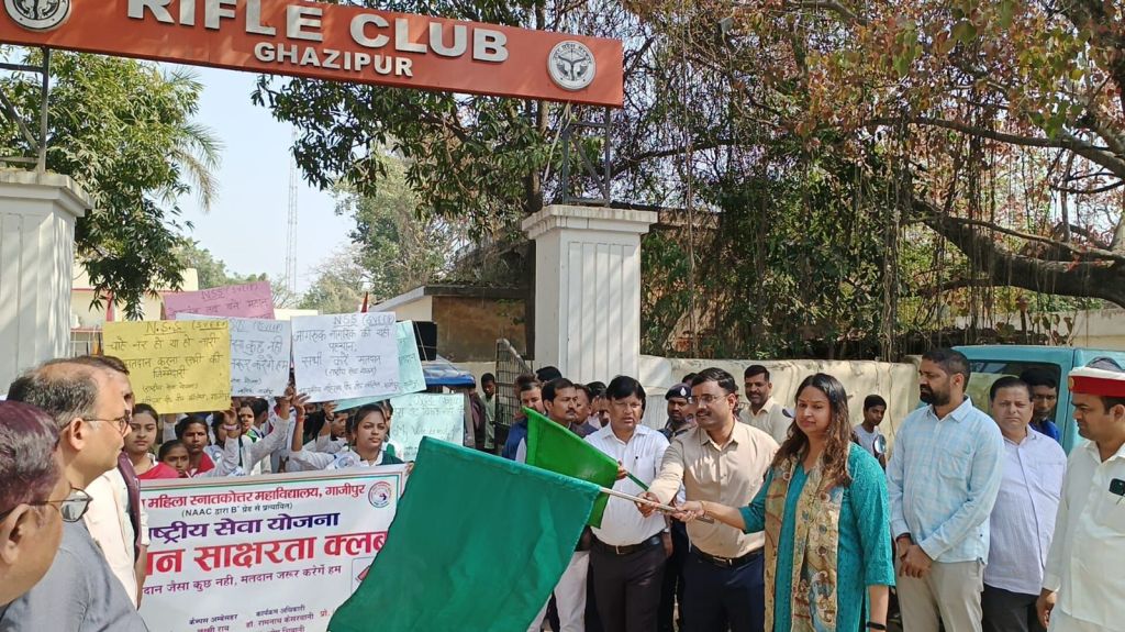 गाजीपुर। भारत निर्वाचन आयोग के निर्देशानुसार लोक सभा सामान्य निर्वाचन-2024 हेतु स्वीप कार्यक्रम के अन्तर्गत जिलाधिकारी/जिला निर्वाचन अधिकारी आर्यका अखौरी ने शनिवार को रायफल क्लब सभागार में महिला पी0जी कालेज, एम0एच0स्कूल, स्नाकोत्तर महाविद्यलाय एवं विभिन्न विद्यालयो एवं स्काउट गाईट के छात्र छात्राओं द्वारा मतदाताओं को मतदान करने हेतु हरी झण्डी दिखाकर जागरूकता रैली को रवाना किया। रैली कचहरी से प्रस्थान कर नेहरू स्टेडियम जाकर समाप्त हुआ। राष्ट्रीय सेवा योजना के तत्वाधान में जिलाधिकारी ने उपस्थित छात्राओं एवं निर्वाचन के अधिकारियो को मतदाता की शपथ दिलाई गयी। उन्होनें कहा कि मतदाता बनना अपने आप मे एक गर्व की बात है इसलिए अपने कर्तव्य का पालन करते हुए 01 जून, 2024 को मतदान जरूर करे और आस पास के अपने लोगो एवं दूसरे व्यक्ति को भी प्रेरित करे, क्योकि मजबूत लोकतंत्र के लिए सभी मतदाताओ का वोट करना जरूरी है। उन्होंने सभी विद्यालयो के प्रधानाध्यापाको एवं समस्त विकास खण्डो के ग्राम पंचायतो एवं समाज सेवी संस्थाओ से अपील किया कि नाटक नुक्कड़ के माध्यम से लोगो को जागरूक करे की कोई भी व्यक्ति जिसका अधिकार को वो छूट न पाये। उन्होने लोकतंत्र के महत्व के बारे मे बताते हुए मतदान करने के लिए जागरुक करें। उन्होने बताया कि मतदान के दिन मतदाताओं को कोई दिक्कत नहीं हो, इसके लिए तमाम तरह के उपाय किये जा रहे हैं। दिव्यांगों और वृद्ध मतदाताओं के लिए विशेष व्यवस्था की जा रही है। दिव्यांगों तथा वृद्ध जनों के लिए वोट डालते समय व्हील चेयर का इंतजाम किया जाएगा। रैली के दौरान छात्र/छात्राओ द्वारा मतदाता जागरूकता से संबंधित गगन भेदी नारे लगाये जा रहे थे। छात्राओ द्वारा जैसे चाहे नर हो या नारी मतदान है सबकी जिम्मेदारी, लोकतंत्र हो तभी महान सब करें जहां मतदान, बनो देश के भाग्य विधाता अब जागो प्यारे मतदाता, जागरूक देश की है पहचान हो शत प्रतिशत मतदान, करें राष्ट्र का जो उत्थान करें उसी को हम मतदान, के नारे लगाती रही।