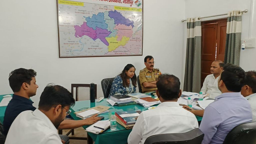 गाजीपुर।लोक सभा सामान्य निर्वाचन-2024 के दृष्टिगत निर्वाचन संबधी विविध कार्यो को समयबद्ध एवं सुचारू ढंग से सम्पन्न कराने एवं निर्वाचन को सकुशल संचालन तथा भारत निर्वाचन आयोग के निर्देशों का शत-प्रतिशत अनुपालन सुनिश्चित कराए जाने के उद्देश्य से जिला निर्वाचन अधिकारी/जिलाधिकारी आर्यका अखौरी की अध्यक्षता एवं पुलिस अधीक्षक ओमवीर सिंह की उपस्थिति में सहायक रिटर्निग आफिसर-375 गाजीपुर, जिला सूचना विज्ञान अधिकारी, जिला सूचना अधिकारी, सोशल मीडिया एक्सपर्ट के तहत सुयोग्य पत्रकार विनय सिंह की उपस्थिति में एम0सी0एम0सी0 के अन्तर्गत पेड न्यूज/मीडिया सेल/सोशल मीडिया के क्रियान्वयन/तैयारियों के संबंध में जिला निर्वाचन कार्यालय में बैठक सम्पन्न की।