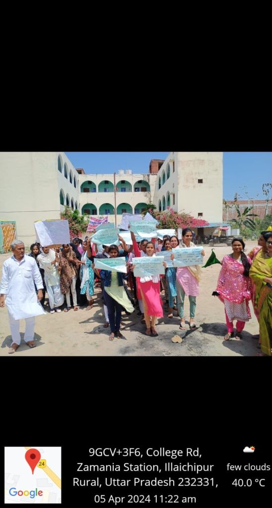 इण्टर कालेज करण्डा में छात्र/छात्राओं द्वारा संगोष्ठी एवं मतदाता जागरूकता पोस्टर के माध्यम से जागरूक किया गया। जिसमे लोगो को आगामी 1 जून, 2024 को पूरे जोर-सोर से मतदान करने के लिए जागरूक किया गया।