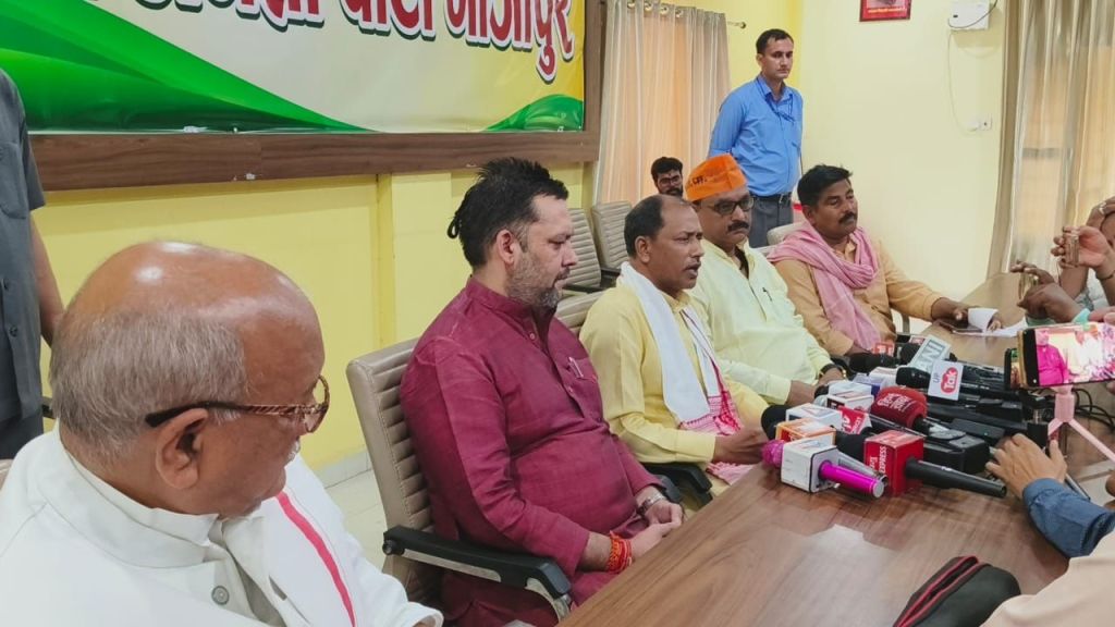 प्रेसवार्ता को सम्बोधित करते हुए भाजपा प्रत्याशी पारसनाथ राय ने पार्टी के प्रति आभार व्यक्त किया। कहा कि उनके जैसे साधारण कार्यकर्ता को प्रत्याशी बनाया है। उन्होने कहा कि सभी कार्यकर्ता प्रसन्न हैं और उन कार्यकर्ताओं से मिल रहे स्नेह और सम्मान से मै अविभूत हूं। एक सवाल के जबाब पर उन्होने कहा कि मैं एक शिक्षक हूं, चाणक्य का शिष्य हूं और नंदवंश का नाश कैसे हो यह मैं जानता हूं। लोकसभा में जातिगत समीकरण के सवाल पर उन्होने कहा कि पूरे देश में जातिगत समीकरण टूटे हैं अगर जाति का फार्मूला लागू होता तो मोदी प्रधानमंत्री नही होते। पिछले चुनाव में सपा-बसपा गठबंधन के बावजूद मनोज सिन्हा 2014 के मुकाबले एक लाख 48 हजार मत ज्यादा पाये थे इससे यह प्रतीत होता है कि जिले में जाति गठबंधन टूटे हैं। 2019 के चुनाव में सपा-बसपा गठबंधन के बावजूद भी भाजपा ने पूरे प्रदेश में परचम लहराया है। भाजपा जिलाध्यक्ष सुनील सिंह ने कहा कि भाजपा प्रत्याशी पारसनाथ राय बहुत पुराने संघ और पार्टी के कार्यकर्ता रहे हैं। शीर्ष नेतृत्व के निर्णय के साथ आज जिले का हर भाजपा कार्यकर्ता पार्टी के साथ है। निश्चय ही लक्ष्य की प्राप्ति होगी। इस अवसर पर भाजपा की सदस्यता ग्रहण किये पूर्व विधायक राजकुमार गौतम ने पार्टी के प्रति आभार प्रकट किया। इस अवसर पर लोकसभा संयोजक कृष्ण बिहारी राय, जिला मीडिया प्रभारी शशिकान्त शर्मा, विनोद अग्रवाल उपस्थित थे।