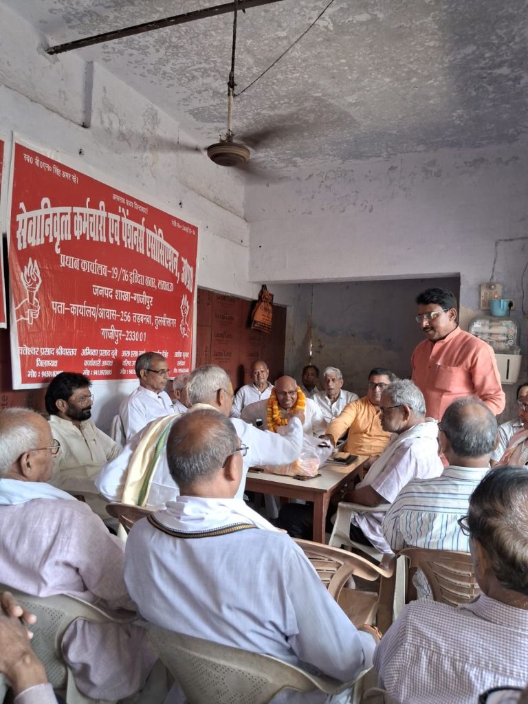 गाजीपुर। सेवा निवृत कर्मचारी एवं पेंशनर्स ऐशो की मासिक बैठक सोमवार को जिला मुख्यालय पर स्थित कलेक्ट्रेट परिसर में पेंशनर्स भवन में जिलाध्यक्ष मुक्तेश्वर श्रीवास्तव की अध्यक्षता में की गयी, जिसमें पूर्व घोषित कार्यक्रम के अनुरूप लोक तंत्र के पर्व पर मतदाता जागरूकता अभियान प्राथमिकता के आधार पर चलाने का निर्णय लिया गया। जिलाध्यक्ष मुक्तेश्वर ने वरिष्ठ कोषाधिकारी की कर्मचारी विरोधी नीतियों एवं अमानवीय व्यवहार का घोर विरोध किया। जिला मंत्री जनार्दन सिंह ने सदस्यता अभियान युद्ध स्तर पर चलाने की अपील की। कार्यकारी अध्यक्ष अम्बिका दूबे ने चेतावनी दी कि यदि किसी भी सेवा निवृत कर्मचारी के देयक के भुगतान में बिलंब हुआ तो इसके गंभीर परिणाम होंगे। प्रख्यात साहित्यकार एवं कवि धर्मदेव यादव धर्मेश, कामेश्वर द्विवेदी, विजय कुमार मधुरेश, दिनेश शर्मा, हरी शंकर पाण्डेय, अमर नाथ तिवारी अमर, बरमेश्वर उपाध्याय, सुरेन्द्र प्रताप, बैजनाथ तिवारी, अरुण सिंह आदि ने काव्य पाठ कर मंत्र मुग्ध कर दिया। वक्ता के क्रम में ओम प्रकाश यादव, डा श्री कांत पाण्डेय, मृत्युंजय मिश्र, डा पारस नाथ सिंह, रामानुज राय, अशोक कुमार, डा सुग्रीव सिंह ने संबोधित किया। अध्यक्षता जिलाध्यक्ष मुक्तेश्वर श्रीवास्तव संचालन जिला मंत्री जनार्दन सिंह एवं अम्बिका दूबे ने संयुक्त रूप से किया।