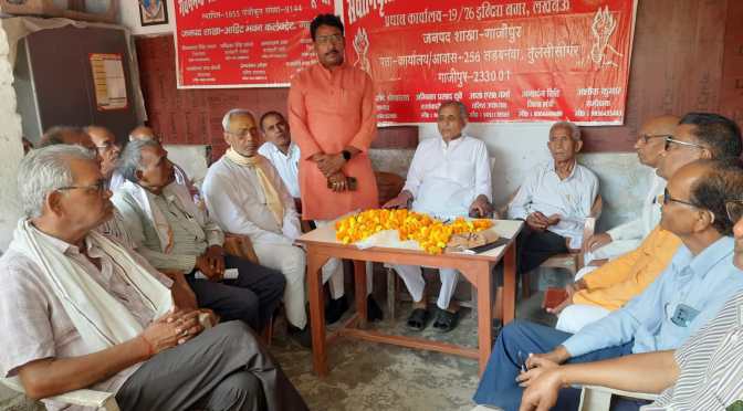 गाजीपुर। सेवा निवृत कर्मचारी एवं पेंशनर्स ऐशो की मासिक बैठक सोमवार को जिला मुख्यालय पर स्थित कलेक्ट्रेट परिसर में पेंशनर्स भवन में जिलाध्यक्ष मुक्तेश्वर श्रीवास्तव की अध्यक्षता में की गयी, जिसमें पूर्व घोषित कार्यक्रम के अनुरूप लोक तंत्र के पर्व पर मतदाता जागरूकता अभियान प्राथमिकता के आधार पर चलाने का निर्णय लिया गया। जिलाध्यक्ष मुक्तेश्वर ने वरिष्ठ कोषाधिकारी की कर्मचारी विरोधी नीतियों एवं अमानवीय व्यवहार का घोर विरोध किया। जिला मंत्री जनार्दन सिंह ने सदस्यता अभियान युद्ध स्तर पर चलाने की अपील की। कार्यकारी अध्यक्ष अम्बिका दूबे ने चेतावनी दी कि यदि किसी भी सेवा निवृत कर्मचारी के देयक के भुगतान में बिलंब हुआ तो इसके गंभीर परिणाम होंगे। प्रख्यात साहित्यकार एवं कवि धर्मदेव यादव धर्मेश, कामेश्वर द्विवेदी, विजय कुमार मधुरेश, दिनेश शर्मा, हरी शंकर पाण्डेय, अमर नाथ तिवारी अमर, बरमेश्वर उपाध्याय, सुरेन्द्र प्रताप, बैजनाथ तिवारी, अरुण सिंह आदि ने काव्य पाठ कर मंत्र मुग्ध कर दिया। वक्ता के क्रम में ओम प्रकाश यादव, डा श्री कांत पाण्डेय, मृत्युंजय मिश्र, डा पारस नाथ सिंह, रामानुज राय, अशोक कुमार, डा सुग्रीव सिंह ने संबोधित किया। अध्यक्षता जिलाध्यक्ष मुक्तेश्वर श्रीवास्तव संचालन जिला मंत्री जनार्दन सिंह एवं अम्बिका दूबे ने संयुक्त रूप से किया।