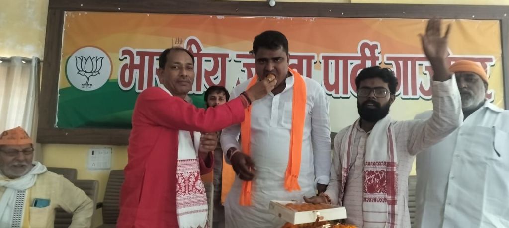 गाजीपुर। भाजपा प्रदेश कार्यालय, लखनऊ में उपमुख्यमंत्री डॉ बृजेश पाठक द्वारा पार्टी की सदस्यता ग्रहण कर बुधवार को भाजपा जिला कार्यालय छावनी लाइन पर सैकड़ों साथियों संग पहुंचे जमानियां विधानसभा के दिल्लाचावर गांव के मूल निवासी, समाजवादी पार्टी के पूर्व प्रदेश महासचिव तथा काशी हिन्दू विश्वविद्यालय के छात्र नेता रहे इं दयाशंकर सिंह यादव का जिला अध्यक्ष सुनील सिंह के नेतृत्व में भव्य स्वागत अभिनंदन किया गया।