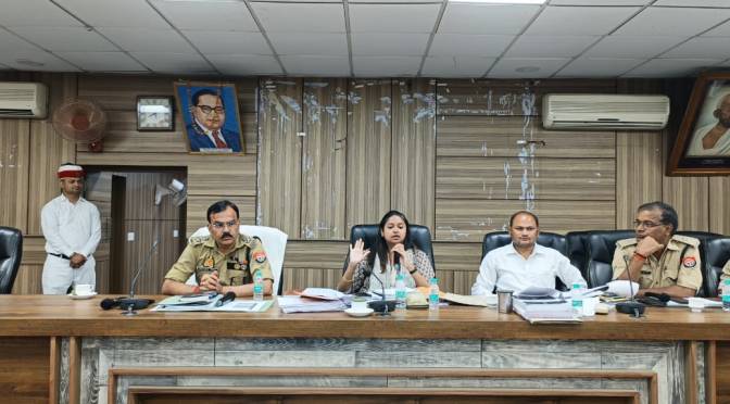 गाजीपुर। लोक सभा चुनाव को सकुशल, निष्पक्ष, शान्तिपूर्ण ढंग से सम्पन्न कराने के लिए जिलाधिकारी/जिला निर्वाचन अधिकारी आर्यका अखौरी की अध्यक्षता एवं पुलिस अधीक्षक ओमवीर की उपस्थित में शुक्रवार को समस्त उपजिलाधिकारी/क्षेत्राधिकारी/थाना प्रभारी संग बैठक जिला पंचातय सभाागर में सम्पन्न हुआ। बैठक में उप जिला निर्वाचन अधिकारी दिनेश कुमार, पुलिस अधीक्षक शहरी ज्ञानेंद्र, पुलिस अधीक्षक ग्रामीण बलवंत, डी एफ ओ, डिप्टी कलेक्टकर सालिक राम उपस्थित रहे। बैठक में जिलाधिकारी ने उपस्थित निर्वाचन कार्य मे लगे समस्त अधिकारियो को निर्वाचन आयोग की गाईड लाईन के हिसाब से कार्य करने का निर्देश दिया। उन्होने अधिकारियों को मतदान से एक दिन पूर्व, मतदान के दिन एवं मतदान समाप्ति के पश्चात् के कार्य दायित्यों का बोध कराते कहा कि निर्वाचन में लगे समस्त अधिकारी पूरी लगन, निष्ठा, ईमानदारी ,निष्पक्षता एवं पारदर्शी तरीके से अपने-अपने दायित्वो का निर्वहन करेगे। अधिकारी अपने-अपने मतदान केन्द्र, बूथ, रास्ते, शौचालय, संवेदन/अतिसंवेदन वूथो का निरीक्षण पहले से कर लेंगे तथा जो भी कमियां है उसे समय रहते सही करायेगे। उन्होने कहा कि बूथो पर सारे मूल भूत सुविधाएॅ पहले से सुनिश्चित रहे ताकि मतदान के दौरान किसी प्रकार की कोई भी समस्या न रहे।