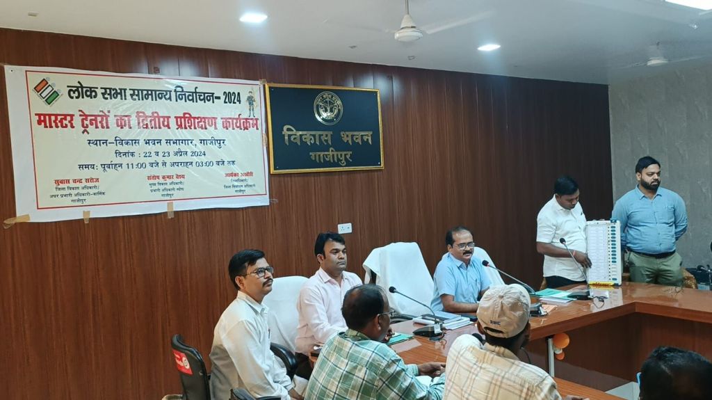 गाजीपुर। जिला निर्वाचन अधिकारी जिला मजिस्ट्रेट आर्यका अखौरी के निर्देश के क्रम में मुख्य विकास अधिकारी प्रभारी अधिकारी कार्मिक संतोष कुमार वैश्य की अध्यक्षता में सोमवार को लोकसभा सामान्य निर्वाचन-2024 के दृष्टिगत मास्टर ट्रेनर्स के द्वितीय प्रशिक्षण कार्यक्रम विकास भवन सभागार मे सम्पन्न हुआ। इस दौरान मास्टर ट्रेनर्स को मतदान प्रक्रिया एवं वीवी पैट, वीयू, सीयू के तकनीकि जानकारी एवं संचालन आदि के बारे में विस्तृत रूप से प्रशिक्षण दिया गया। भारत निर्वाचन आयोग के निर्देश पर जनपद में लोकसभा सामान्य निर्वाचन-2024 को पारदर्शी, निष्पक्ष एवं सकुशल सम्पन्न कराने हेतु आज मास्टर ट्रेनरों को द्वितीय प्रशिक्षण दिया गया। डिस्ट्रिक लेवल मास्टर ट्रेनर ओ पी भारती, शौरभ पाठक एवं राजवंशी सिंह द्वारा 46 मास्टर ट्रेनर्स को प्रोजेक्टर के माध्यम से स्टेप-टू-स्टेप प्रशिक्षित किया गया। प्रशिक्षण के दौरान पोस्टल बैलेट, ईवीएम, वीवीपैट की पूरी जानकारी तथा मतदान प्रक्रिया के बारे में विस्तृत जानकारी दी गई। इसके साथ ही मास्टर ट्रेनरों को मतदान के दिन पीठासीन अधिकारी, मतदान अधिकारी प्रथम, द्वितीय व तृतीय के कार्यों एवं दायित्व के बारे में बताया गया। मतदान प्रारंभ होने से मतदान समाप्ति तक पीठासीन अधिकारी को क्या-क्या करना है, की विस्तृत जानकारी दी गई, जिसमें पीठासीन अधिकारी की डायरी भरने, चैलेंज वोट, टेंडर वोट सहित अन्य कार्यों की विस्तृत जानकारी दी गई। इस अवसर पर सीनियर मास्टर ट्रेनरों द्वारा प्रशिक्षण में सामान्य प्रशिक्षण एवं ईवीएम संबंधित विशेष बिंदुओं जैसे सीआरसी क्या है, पीठासीन कितने प्रकार के लिफाफे जमा करते है, ईवीएम को जोड़ने का सही क्रम क्या है, एएसडी सूची क्या है, 17 ए क्या है, 17 सी क्या है, टेंडर वोट क्या है, चौलेंज वोट क्या है, वोटिंग कंपार्टमेंट में कौन-कौन सी मशीन रहती है आदि पर पावरप्वाइंट प्रेजेंटेशन के माध्यम से विस्तार पूर्वक चर्चा की गई और नए अपडेट्स आदि के बारे में बताया गया। इस अवसर जिला विकास अधिकारी, समस्त मास्टर ट्रेनर उपस्थित रहे।