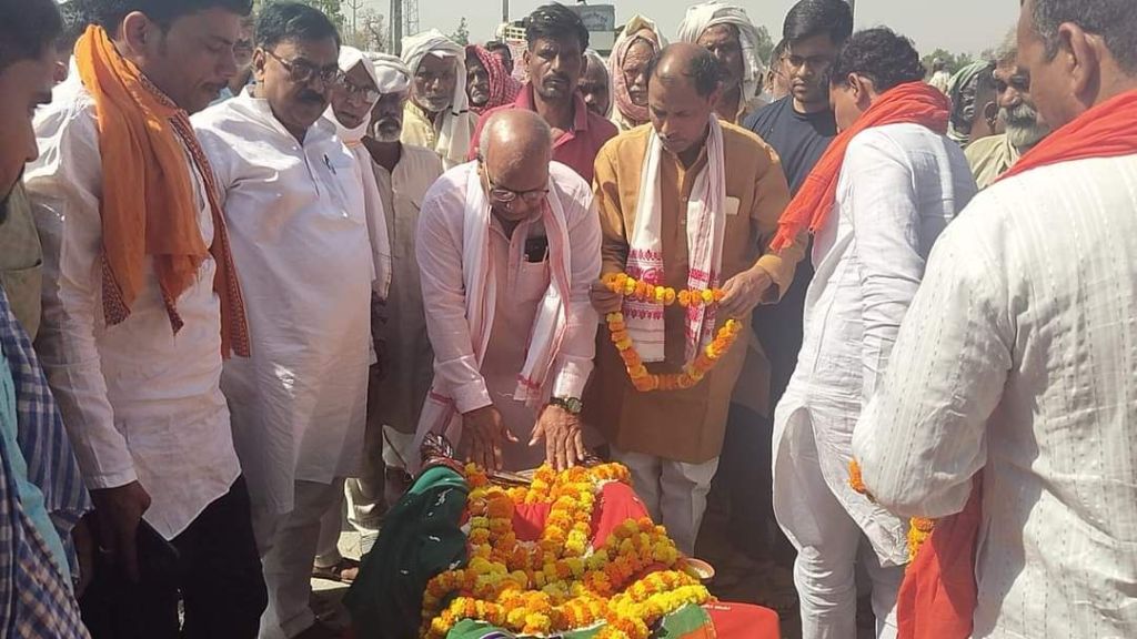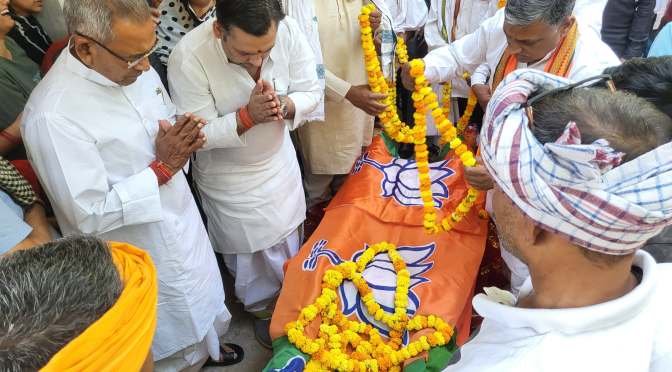 गाजीपुर। बिरनो थाना क्षेत्र के खड़गपुर, बिठौरा निवासी राष्ट्रीय स्वयं सेवक संघ के बाल स्वयं सेवक,भारतीय जनता पार्टी के संस्थापक सदस्य तथा जनसंघी नेता बाल्मीकि सिंह का आज गाजीपुर श्मशानघाट पर अंत्येष्टि संस्कार पुरे राजकीय सम्मान से किया गया। उनके पैतृक घर पर भाजपा जिलाध्यक्ष सुनील सिंह, कृष्ण बिहारी राय, लोकसभा प्रत्याशी पारसनाथ राय,अभिनव सिन्हा,अवधेश राजभर, मन्नू राजभर, राजेश चौहान,प्रवीण सिंह,मनोज सिंह, प्रमोद राय, शशिकांत शर्मा आदि ने भाजपा झंडा ओढ़ाकर श्रद्धांजलि दी और बाल्मीकि सिंह अमर रहे के नारे लगाए।