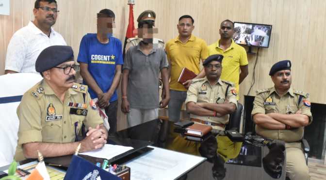 गाजीपुर। स्वाट/सर्विलांस और जंगीपुर पुलिस टीम ने गांजा की अवैध तस्करी करने वाले 2 अन्तर्राज्यीय गांजा तस्कर को गिरफ्तार किया। इनके कब्जे से 83.550 किग्रा गांजा (जिसकी अन्तराष्ट्रीय कीमत लगभग 20 लाख 88 हजार 750 रूपया है) बरामद किया गया। इसकी जानकारी एसपी कार्यालय में प्रेसवार्ता कर एसपी ओमवीर सिंह ने गुरूवार को दिया। एसपी ने बताया कि थानाध्यक्ष जंगीपुर अमित कुमार पाण्डेय, यूपी STF पुलिस टीम उप निरीक्षक जावेद आलम सिद्दीकी व स्वाट /सर्विलांस टीम उप निरीक्षक शिवाकान्त मिश्रा द्वारा संयुक्त रूप से चलाये गये आपरेशन में मादक पदार्थ (गांजा) की अवैध तस्करी करने वाले अन्तर्राज्यीय गिरोह को 83.550 किग्रा मादक पदार्थ गांजा (जिसकी अनुमानित कीमत अन्तराष्ट्रीय बाजार में करीब 20 लाख 88 हजार 750 रूपया हैं ) उसके साथ ऊसर गांव से जैयराम पुर की तरफ जाने वाले रास्ते बहदग्राम नसीरपुर के पास से बुधवार की रात को अभियुक्त छोटे लाल गुप्ता पुत्र स्व0 जमुना गुप्ता निवासी हनुमान मंदिर के पास बहादुरगंज थाना कासिमाबाद और साहब राज यादव पुत्र रामजीत यादव निवासी सिसवा थाना मेहनगर जनपद आजमगढ को गिरफ्तार करने मे सफलता प्राप्त की। पूछताछ में अभियुक्तों ने बताया कि हम लोग असम राज्य से ट्रक के केबिन के उपर बने हुड में छिपाकर गांजा लाते हैं और उत्तर प्रदेश के विभिन्न जनपदो में बेचते है। बेचने के बाद प्राप्त धन से अपने तथा अपने परिवार की आर्थिक तथा भौतिक आवश्यक्ताओ की पूर्ति करते है। अभियुक्त साहबराज यादव द्वारा बताया गया कि वह पूर्व में भी गांजा तस्करी में संलिप्त रहा है तथा जेल भी जा चुका है। अभियुक्तों के पास से गांजा के साथ एक ट्रक UP53DT1183 और 3 मोबाईल फोन बरामद किया गया।
