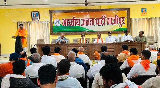 गाजीपुर। प्रधानमंत्री नरेन्द्र मोदी को सर्वसम्मति से राष्ट्रीय जनतांत्रिक गठबंधन का नेता चुने जाने तथा लगातार तीसरी बार प्रधानमंत्री बनने पर भारतीय जनता पार्टी ने शनिवार को जिला कार्यालय पर जिलाध्यक्ष सुनील सिंह की अध्यक्षता में बैठक कर हर्ष जताते हुए सरकार को समर्थन करने वाले दलों को धन्यवाद आभार व्यक्त किया। इस अवसर पर बैठक को संबोधित करते हुए जिलाध्यक्ष सुनील सिंह ने कहा कि प्रधानमंत्री नरेन्द्र मोदी देश के गौरव है और राष्ट्रीय जनतांत्रिक गठबंधन में सभी शामिल दल बधाई के हकदार है जिन्होंने देश के प्रगति और विकास की चल रही निरंतरता को बनाए रखने में नैतिकता से पूर्ण महत्वपूर्ण भूमिका का निर्वहन किया है। पूर्व जिलाध्यक्ष कृष्ण बिहारी राय ने कहा कि लोकसभा चुनाव में विपक्षी इंडी गठबंधन ने जनता में संविधान के प्रति भय का भाव दिखा कर लोगों में भ्रम पैदा किया है। लेकिन देश की जनता ने इन्हें नकार दिया है।
