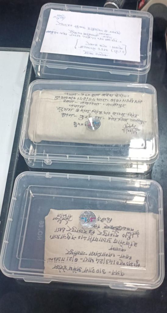 गाजीपुर। स्वाट/सर्विलांस व जमानिया पुलिस की संयुक्त टीम ने (हेरोइन) की तस्करी करने वाले दो अंतर्राज्यीय अभियुक्तों को 670 ग्राम हेरोइन के साथ गिरफ्तार किया। हेरोइन की अंतर्राष्ट्रीय कीमत 1 करोड़ 25 लाख रुपये है। इसकी जानकारी एसपी ऑफिस में एसपी ओमवीर सिंह ने दी। उन्होंने कहा कि 11 जून यानी मंगलवार को स्वाट/सर्विलांस व जमानिया थाना पुलिस की संयुक्त टीम द्वारा अन्तर्राज्यीय मादक पदार्थ (हेरोइन) की अवैध तस्करी करने वाले गिरोह के दो अभियुक्तों को 670 ग्राम मादक पदार्थ हेरोइन (जिसकी अन्तर्राष्ट्रीय कीमत लगभग 01 करोड़ 25 लाख रूपये है) उसके साथ जमानियाँ गंगापुल के पास से समय करीब रात 8 बजे गिरफ्तार किया गया। पूछताछ में अभियुक्तो द्वारा बताया गया कि हम लोग चितरा झारखण्ड से कम कीमत पर नशीले पदार्थ को खरीदकर राजस्थान, कोटा, दिल्ली में ले जाकर ऊँची कीमतों पर बेचते हैं। उनसे मिलने वाले पैसों को आपस में बाँट लेते हैं और उसी पैसे से अपना व अपने परिवार का भरण-पोषण व शौक पूरे करते हैं।