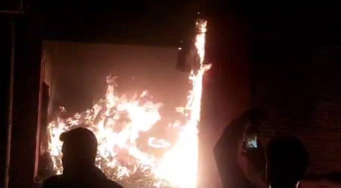 गाजीपुर। शहर के लाल दरवाजा मोहल्ले स्थित रेडीमेड कपड़ो की दुकान ओम बेबी लैंड शोरूम में बीती रात लगभग ढाई बजे अज्ञात परिस्थितियों में भीषण आग लग गई। भीषण आग लगने से एक करोड़ का सामान जलकर राख होने का दुकान मालिक ने अनुमान जताया है। दुकान में आग लगने की सूचना मिलते ही आसपास के लोग इकट्ठा हो गए और फायर ब्रिगेड को बुलाकर आग पर काबू पाने का प्रयास किया गया, जो कि करीब तीन घंटे तक चलता रहा। लेकिन जब तक आग पर काबू पाया गया, दुकान का सारा सामान जलकर का को चुका था। दुकान के मालिक अंशुल अग्रवाल ने बताया कि रात लगभग 2:30 बजे दुकान में आग लगी। 10-15 मिनट के अंदर आग लगने की सूचना मुझे मिल गई। आनन फानन मैं मौके पर पहुंचा। आसपास के लोग जुट चुके थे। फायर ब्रिगेड को सूचना दी गई। फायर ब्रिगेड आग लगने के आधे घंटे में पहुंच गया और आग पर काबू पाने का प्रयास किया गया, जो कई घण्टो चला। आग के कारण दुकान में रखा सारा सामान जलकर खाक हो गया। दुकान मालिक ने आग लगने की वजह से लगभग 1 करोड रुपए का माल नष्ट होने का अनुमान जताया है। साथ ही उन्होंने आग लगने को लेकर साजिश की संभावना भी जताई है। कहा कि शटर का ताला टूटा हुआ मिला है। ऐसे में अनुमान है कि पहले चोरी के नियत से बगल के शटर का ताला तोड़ा गया और अंदर घुस गए।शोरूम में जब नगदी नहीं मिला तो चोरों ने आग लगा दी, ऐसा प्रतीत हो रहा है। फिलहाल पुलिस मामले की छानबीन में जुटी हुई है।