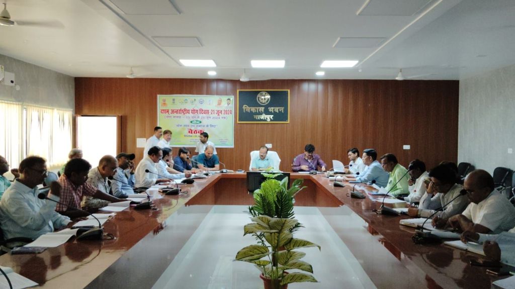 गाजीपुर। दशम अंतर्राष्ट्रीय योग दिवस 21 जून 2024 के मौके पर बड़ी संख्या में लोग संभावित स्थल पुलिस लाईन में शामिल होंगे। शासन की ओर से भव्य योग कार्यक्रम और शिविर आयोजित किए जाएंगे। इसके पूर्व योग सप्ताह का आयोजन 15 से 21 जून तक किया जाएगा। इसमें जिला मुख्यालय के साथ तहसील, विकास खंड और ग्राम पंचायत स्तर पर लोगों को योग के प्रति जागरूक करने के लिए योग शिविरों के आयोजन किये जायेगे। जिसमें सभी विभागों के कर्मचारी तथा अधिकारी शामिल होंगे। शुक्रवार को विकास भवन सभागार में जिला विकास अधिकारी संतोष कुमार वैश्य की अध्यक्षता में जिला संचालन समिति की बैठक करके तैयारियों की समीक्षा की गई। बैठक में उन्होंने योग दिवस के आयोजन के लिए तैयार कार्य योजना पर व्यवस्था दुरूस्त करने का निर्देश संबंधित विभागों के विभागाध्यक्षों को दिया।