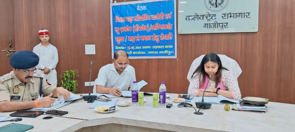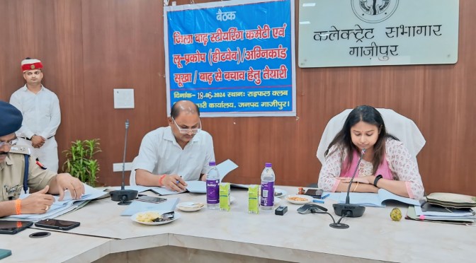 गाजीपुर। आगामी बरसात के मौसम में सम्भावित बाढ़ एवं कटान आदि से बचाव एवं सुरक्षा के दृष्टिगत बाढ़ स्टीयरिंग कमेटी की बैठक जिलाधिकारी आर्यका अखौरी ने ली। जिलाधिकारी ने जनपद में बाढ़ के लिहाज से अतिसेवदनशील, संवेदनशील गॉवो के आस-पास के इलाकों में सम्भावित बाढ़ से पूर्व की गयी तैयारियों की गहन समीक्षा करते हुए बंधो, बाढ़ चौकियो, आश्रय स्थलो, बाढ़ के दौरान फैलने वाली संक्रामक बीमारियों आदि के बारे में सम्बंधित विभागीय अधिकारियों को आवश्यक दिशा-निर्देश दिये।