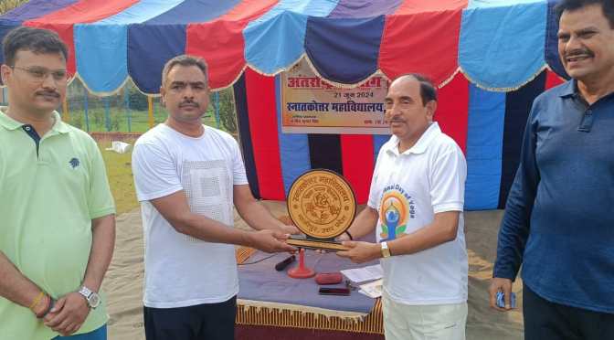 गाजीपुर। दसवां अंतर्राष्ट्रीय योग दिवस स्नातकोत्तर महाविद्यालय सहित पूरे देश में धूमधाम के साथ मनाया गया। 2015 में अंतर्राष्ट्रीय योग दिवस की शुरुआत की गई थी। इस दिन देश के अलग-अलग हिस्से में योग के प्रति जागरूकता फैलाने को लेकर लोग योगाभ्यास करते हैं। अंतर्राष्ट्रीय योग दिवस के अवसर पर पी० जी० कॉलेज परिसर में भी योग शिविर का आयोजन किया गया। इस योग शिविर में बड़ी संख्या में शिक्षक, कर्मचारी के साथ-साथ ही एनसीसी के कैडेटों ने बढ़-चढ़कर हिस्सा लिया। योग शिविर में 92 बटालियन यूपी एनसीसी के कमांडिंग आफिसर कर्नल अनुभव राज मौजूद रहे। आमंत्रित योग प्रशिक्षक डॉ० अनुराग सिंह ने शिविर में मौजूद सभी लोगों को योग के अलग-अलग आसनों का अभ्यास कराया। इस अवसर पर कर्नल अनुभव राज को महाविद्यालय की ओर से स्मृति चिन्ह एवं पुष्प गुच्छ देखकर प्राचार्य प्रोफे० (डॉ०) राघवेन्द्र कुमार पाण्डेय द्वारा सम्मानित किया। कर्नल अनुभव राज ने इस अवसर पर कहा कि एक स्वस्थ शरीर में ही स्वस्थ मस्तिष्क विकसित हो सकती है। युवाओं को योग का अभ्यास अपने जीवन में दैनिक स्तर पर करना चाहिए। प्रोफे० (डॉ०) राघवेन्द्र कुमार पाण्डेय ने इस अवसर पर कहा कि इस वर्ष पूरे विश्व में 21 जून को अंतर्राष्ट्रीय योग दिवस “स्वयं एवं समाज के लिए योग” थीम पर मनाया जा रहा है। योग दिवस की शुरुआत साल 2015 में हुई थी।इसके बाद से हर साल 21 जून को पूरी दुनिया में इसे मनाया जाता है।इस दिन योगाभ्यास किया जाता है। वहीं देश-विदेश में योगाभ्यास के लिए विशेष आयोजन किये जाते हैं।योग का हमारे जीवन में काफी अहम महत्व होता है। यह न केवल स्वास्थ्य के लिए अच्छा होता है। बल्कि यह शांत मन और प्रबल विचारों और एकाग्रता करने में मदद करता है। इस अवसर पर बड़ी संख्या में महाविद्यालय के शिक्षकों, कर्मचारियों और छात्र-छात्राओं की मौजूदगी रही।
