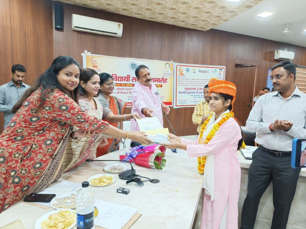 गाजीपुर। प्रदेश मे यूपी बोर्ड, सी बी एस सी बोर्ड, आई सी एस सी बोर्ड, मदरसा बोर्ड व संस्कृत बोर्ड के कक्षा 10 व 12 के मेधावी छात्र/छात्राओ का सम्मान समारोह कार्यक्रम एवं विभिन्न परियोजनाओ का लोकापर्ण लोक भवन से मुख्यमंत्री योगी आदित्य नाथ के द्वारा सम्पन्न हुआ। मुख्य मंत्री ने लोक भवन से लाइव प्रसारण के माध्यम से विभिन्न निर्माण कार्यो का लोकार्पण व जिला बेसिक शिक्षा परिषद के अधीन संचालित परिषदीय विद्यालयो के शैक्षिक सत्र 2024-25 मे अध्ययनरत प्रदेश मे कुल 88 लाख छात्र/छात्राओ को निःशुल्क प्रदान की जाने वाली सुविधाओ (ड्रेस, स्कूल बैग, जूता-मोजा, स्वेटर एवं स्टेशनरी) हेतु छात्र/छात्राओ के माता/पिता/अभिभावको के खाते मे धनराशि रूपये 1200 का हस्तान्तरण प्रत्यक्ष लाभ अन्तरण (डी बी टी) के माध्यम से बटन दबाकर किया। जिसका लाईव प्रसारण जनपद स्तर पर कलेक्ट्रंेट सभागार मे देखा व सुना गया।