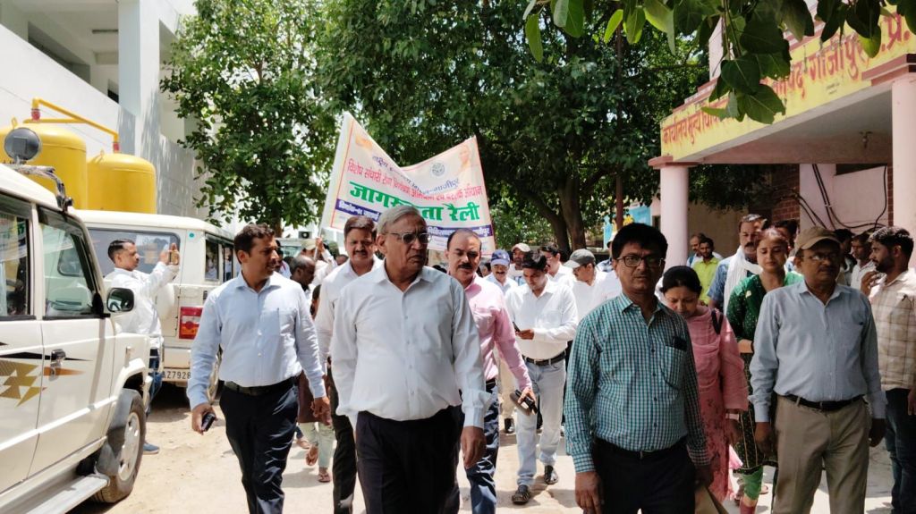 गाजीपुर। संचारी व मच्छर जनित रोगों की रोकथाम व नियंत्रण के लिए सोमवार को अपर जिलाधिकारी भू0/रा0 अमरेश कुमार एवं मुख्य चिकित्साधिकारी डॉ देश दीपक पाल की अध्यक्षता में कार्यालय से विशेष संचारी रोग नियंत्रण अभियान का शुभारंभ हरी झंडी दिखाकर रवाना किया। इस दौरान जन जागरूकता रैली का भी आयोजन किया गया। जिसमें स्वास्थ्य समेत सभी विभिन्न विभागों के अधिकारियों, स्वास्थ्यकर्मियों, आशा-आंगनबाड़ी कार्यकर्ताओं, स्कूली छात्र-छात्राओं ने बढ़-चढ़ कर प्रतिभाग किया।