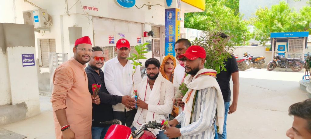 गाजीपुर। सोमवार को लंका स्थित पेट्रोल पम्प पर सपा नेताओं द्वारा जन साधारण को अनोखे तरीके से जागरूक कर अपने महबूब नेता व सपा सुप्रीमो अखिलेश यादव का जन्मोत्सव मनाते देखा गया। कार्यक्रम का नेतृत्व कर रहे हैं युवा सपा नेता अभिनव सिंह ने बताया कि अखिलेश यादव ने अपना सर्वस्व देश की जनता के हित के लिए समर्पण करके जनसेवा में लगे हुए है ऐसे में हम सभी को उनका सहयोग करना चाहिए। श्री सिंह बिना हेलमेट पहने हुए मोटरसाइकिल चालक को रोक कर उन्हे गुलाब का फुल देकर उनसे हेलमेट पहनने का आग्रह किया। अभिनव सिंह ने लोगो को एक–एक पौधे देकर पौधारोपण करने हेतु संकल्पित किया व जीवन में पौधो की महत्वता को बताया। श्री सिंह व सपा कार्यकर्ताओं ने अपने नेता जन्मदिन पर लोगो में चॉकलेट भी बाटे। लोगो ने अखिलेश यादव को दीर्घायु के आशीर्वाद दिए। इस मौके पर मोहन रावत,अतुल यादव,विक्की यादव,गुड्डू राम,अंश प्रधान,राहुल राय, सरवन गुप्ता आदि उपस्थित रहे।