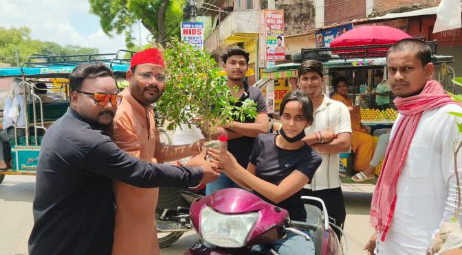 पौध वितरीत कर किया वाहन स्वामियों से अपील