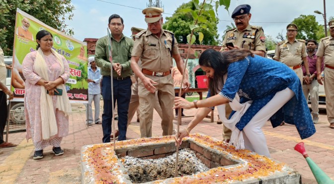 गाजीपुर। वन महोत्सव के अंतर्गत सामाजिक वानिकी वन प्रभाग, रेंज सैदपुर द्वारा तहसील के प्रांगण में जिला अधिकारी आर्यका अखौरी एवं पुलिस अधीक्षक ओमवीर सिंह ने शनिवार को एक पेड़ मां के नाम अभियान के अंर्तगत पौधारोपण किया। जिलाधिकारी आर्यका अखौरी ने कहा कि एक पौधा मां के नाम अभियान को सफल बनाएं, पर्यावरण संरक्षण के लिए अधिक से अधिक पौधारोपण करें, पौधों के महत्व को समझें और इनका संरक्षण करें। पर्यावरण को संरक्षित करने का सरकार के साथ-साथ हम सभी की भी जिम्मेदारी है। पुलिस अधीक्षक ओमवीर सिंह ने कहा कि वृक्ष एवं सामाजिक अथवा भौतिक विकास का संतुलन ही सभ्यता तथा संस्कृति को विकसित करती है, वृक्षों का योगदान केवल बढ़ते हुए प्रदूषण को रोकने में ही नहीं अपितु जलवायु एवं वातावरण के संतुलन में भी सर्वाेपरि है। मुख्य विकास अधिकारी संतोष कुमार वैश्य ने भी पौधारोपण कर जन जन को पौधारोपित करने पर बल दिया। प्रभागीय निदेशक विवेक यादव ने कहा वन महोत्सव 1 जुलाई से 7 जुलाई तक चलेगा पौधारोपण अभियान में लोगों को बढ़-चढ़कर हिस्सा लेना चाहिए। इस अवसर पर क्षेत्रीय वन अधिकारी नम्रता सिंह एवं वन विभाग के कर्मी उपस्थित रहे।