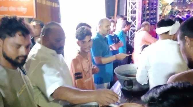 गाजीपुर। सावन के तीसरे सोमवार को नगर के मिश्रबाजार में कांवरियों के लिए भंडारे का आयोजन किया गया। इस भंडारे में हजारों लोगों ने प्रसाद ग्रहण किया। भंडारे का आयोजन श्रद्धालुओं और अभिषेक चौरसिया ने किया। दोपहर बाद शुरू हुआ यह भंडार देर रात तक चला। यह आयोजन बीते कई सालों से लगातार किया जा रहा है। कोरोना काल में भंडारा नहीं किया गया था। मान्यता है कि सावन माह में भंडारा कराना अत्यंत फलदायी होता है। इसी के चलते श्रद्धालु आपसी सहयोग से भंडारा करते हैं। भंडारे में जातिगत भावना से ऊपर उठकर पहुँचे सपा जिला उपाध्यक्ष आमिर अली कई घंटों तक कांवरियों के सेवा में लगे रहे।