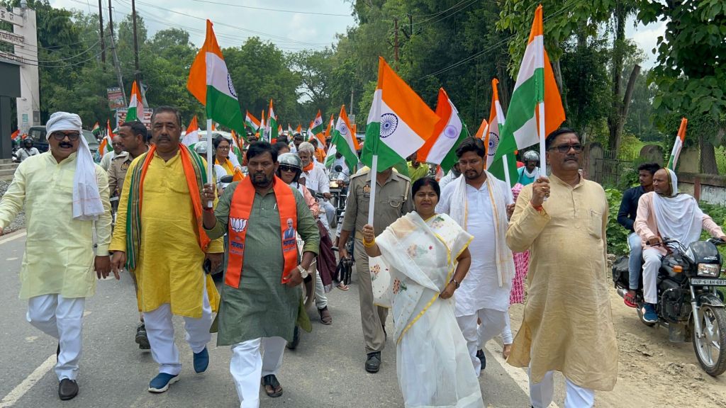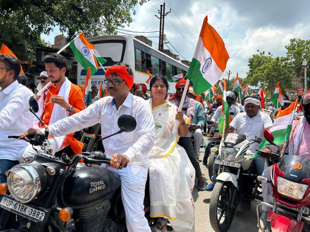 गाजीपुर।हर घर तिरंगा अभियान स्वतंत्रता दिवस के उपलक्ष्य में भारतीय जनता पार्टी युवा मोर्चा सदर विधानसभा द्वारा आयोजित तिरंगा बाइक यात्रा का शुभारंभ मंगलवार को राज्यसभा सांसद डा. संगीता बलवंत ने किया।