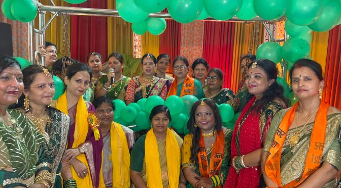 कार्यक्रम की मुख्य अतिथि राज्यसभा सांसद डा. संगीता बलवंत और नगर पालिका अध्यक्ष सरिता अग्रवाल के साथ महिला शिक्षक संघ ने कजरी गा कर सावन महोत्सव मनाया गया।