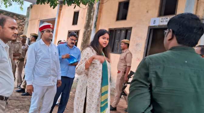 गाजीपुर। उत्तर प्रदेश पुलिस भर्ती एवं प्रोन्नति बोर्ड, लखनऊ द्वारा आयोजित उत्तर प्रदेश पुलिस में आरक्षी नागरिक पुलिस के पदों पर सीधी भर्ती-2023 की लिखित परीक्षा को सकुशल, नकलविहीन, पारदर्शी, निष्पक्ष एवं शान्तिपूर्ण ढंग से सम्पन्न कराये जाने के उद्देश्य से जिलाधिकारी आर्यका अखौरी ने जनपद स्तर पर बनाये गये परीक्षा केन्द्रो का गुरूवार को स्थलीय निरीक्षण का जायजा लिया एवं आवश्यक दिशा निर्देश दिये। जिलाधिकारी ने परीक्षा केन्द्र सुभाष इण्टर कालेज फतेउल्लाहपुर एवं शिव कुमार शास्त्री इण्टर कालेज जंगीपुर का स्थलीय निरीक्षण किया। निरीक्षण के दौरान उन्होने बनाये गये कन्ट्रोल रूम, स्ट्रांग रूम, क्लास रूम, सी सी टी वी कैमरा एवं अन्य व्यवस्थाएॅ चेक करते हुए आवश्यक दिशा निर्देश दिये। जिलाधिकारी ने परीक्षा को सकुशल संपन्न कराने के दृष्टिगत की गई समस्त तैयारियों का निरीक्षण करते हुए ड्यूटी में लगाये गये समस्त संम्बन्धित विभागीय अधिकारियों को निर्देशित किया। कहा कि परीक्षा को निष्पक्ष एवं सुचितापूर्ण सम्पन्न कराना हम सब की जिम्मेदारी है, इसमें अपने-अपने ड्यूटी के अनुसार पूर्ण निष्ठा एवं तत्परता के साथ कार्याे को सम्पन्न कराने की जिम्मेदारी सौपी गई है जिसका हमे पूरी ईमानदारी के साथ निर्वहन करना है।
