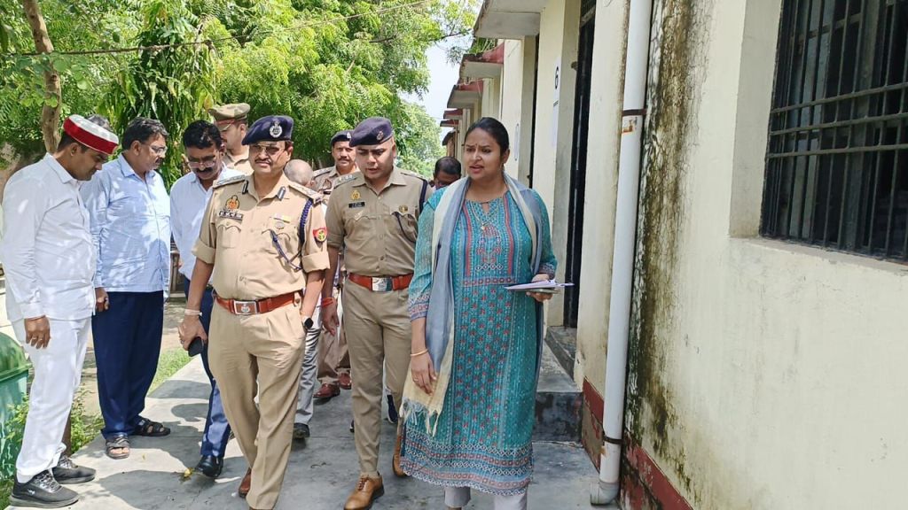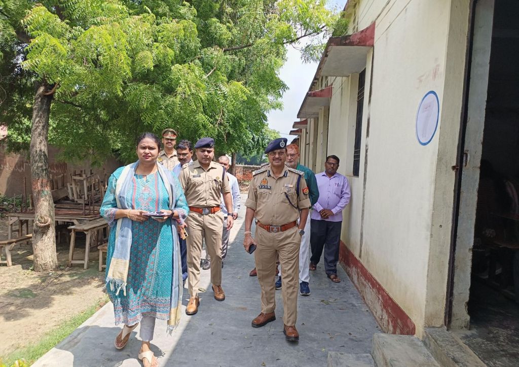 गाजीपुर। उत्तर प्रदेश पुलिस भर्ती एवं प्रोन्नति बोर्ड, लखनऊ द्वारा आयोजित उत्तर प्रदेश पुलिस में आरक्षी नागरिक पुलिस के पदों पर सीधी भर्ती-2023 की लिखित परीक्षा को सकुशल, नकलविहीन, पारदर्शी, निष्पक्ष एवं शान्तिपूर्ण ढंग से सम्पन्न कराये जाने के उद्देश्य से डी आई जी ओमप्रकाश सिंह, जिलाधिकारी आर्यका अखौरी एवं पुलिस अधीक्षक डा0 ईरज राजा ने शनिवार को सुभाष इण्टर कालेज फतेउल्लाहपुर, शिवकुमार शास्त्री इण्टर कालेज जंगीपुर, राजकीय पालिटेक्निक कालेज, इण्टर कालेज खालिसपुर एवं राजकीय बालिका इण्टर कालेज महुआबाग का निरीक्षण कर व्यवस्थाओं का जायजा लिया एवं परीक्षा केंद्रों पर सीसीटीवी कैमरा, स्ट्रांग रूम, चेकिंग, फेस्टिंग, बायोमेट्रिक व्यवस्था को देखा।