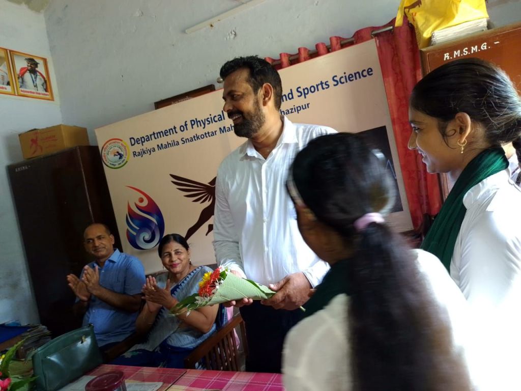 गाजीपुर। राजकीय महिला स्नातकोत्तर महाविद्यालय में शारीरिक शिक्षा विभाग द्वारा राष्ट्रीय खेल दिवस एवं नवागंतुक सम्मान समारोह उमंग का आयोजन गुरुवार को किया गया। समारोह का शुभारंभ मुख्य अतिथि महाविद्यालय की प्राचार्य डॉ अनीता कुमारी द्वारा मेजर ध्यानचंद के चित्र पर पुष्प अर्पित कर किया। इससे पहले प्राचार्य का स्वागत शारीरिक शिक्षा के विभागाध्यक्ष डॉ शंभू शरण प्रसाद ने पुष्प गुच्छ देकर किया। कार्यक्रम में मुख्य वक्ता के रूप में प्राचीन इतिहास विभाग के विभागाध्यक्ष डॉ विकास सिंह ने मेजर ध्यानचंद के जीवन पर विस्तृत प्रकाश डालते हुए कहा की हाँकी के जादूगर मेजर ध्यानचंद हाँकी के खेल में पूरी दुनिया में ठीक वैसे ही प्रतिष्ठा रखते है जैसे क्रिकेट में डॉन ब्रेड मैन फुटबॉल में पेले और लॉन टेनिस में ब्योंन बोर्ग का नाम आता है। आपने 1928 से 1936 के बीच में हुए लगातार तीन ओलिम्पिक खेलों में भारत को स्वर्ण पदक दिलाने में अग्रणी भूमिका निभाई।