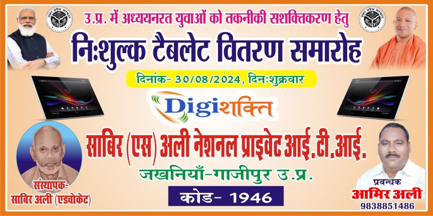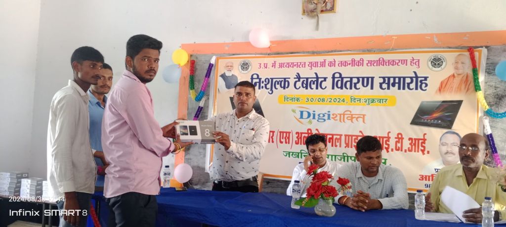 गाजीपुर। स्वामी विवेकानन्द युवा सशक्तिकरण योजना के तहत शुक्रवार को जखनियां क्षेत्र के साबिर एस अली नेशनल प्राइवेट आईटीआई कॉलेज में राजस्व निरीक्षक बृजेश यादव के द्वारा प्रशिक्षुओं में निः शुल्क टैबलेट वितरण किया गया। इस दौरान विशिष्ट अतिथि के रूप में देवनारायण सिंह और विद्यालय के प्रबंधक आमिर अली के द्वारा भी 94 प्रशिक्षुओं में टैबलेट वितरित किया। इस अवसर पर विद्यालय के कर्मचारी अमरनाथ यादव, संदीप कुमार, धर्मवीर भारद्वाज, अजय कुमार, राधेश्याम यादव, शेर बहादुर भारती, गोविंद पटेल, अशोक भारद्वाज सहित अन्य लोग मौजूद रहे।