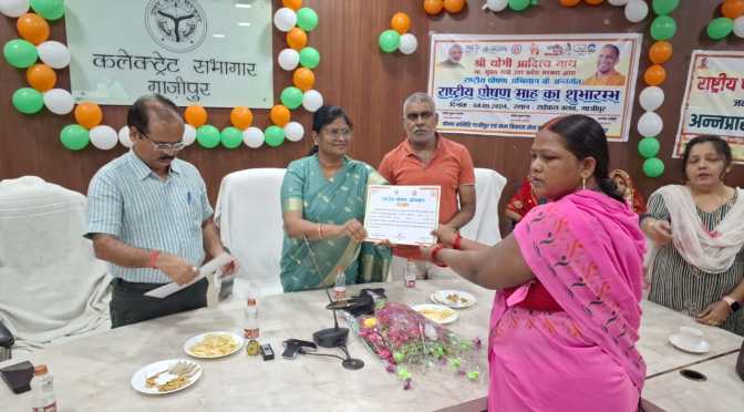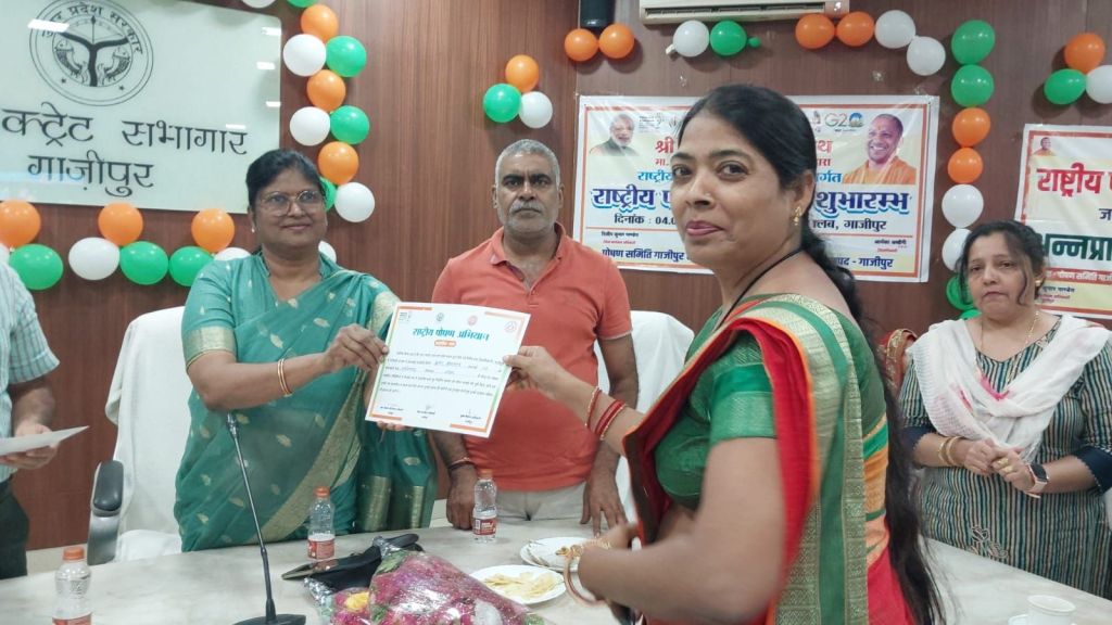 गाजीपुर।जनसमुदाय तक स्वास्थ्य पोषण एवं स्वच्छता संबंधित व्यापक प्रचार प्रसार एवं प्रभावी व्यवहार परिवर्तन हेतु जनआंदोलन के रूप में प्रतिवर्ष के भाँति इस वर्ष भी ‘‘राष्ट्रीय पोषण माह‘‘ का अयोजन 01 से 30 सितम्बर 2024 तक किया गया है। जिसके क्रम में लखनऊ स्थित लोक भवन से मुख्यमंत्री योगी आदित्यनाथ ने इस कार्यक्रम का विधिवत बटन दबाकर उद्घाटन किया तो वही गाजीपुर में नगर पालिका अध्यक्ष सरिता अग्रवाल और भाजपा एमएलसी विशाल सिंह चंचल के प्रतिनिधि प्रदीप पाठक ने गर्भवती महिलाओं के गोद भराई और बच्चों का अन्नप्राशन करा कर इस कार्यक्रम का विधिवत शुभारंभ किया। 1 सितंबर से 30 सितंबर तक चलने वाले साथ में राष्ट्रीय पोषण माह का थीम पोषण के साथ पढ़ाई भी है।